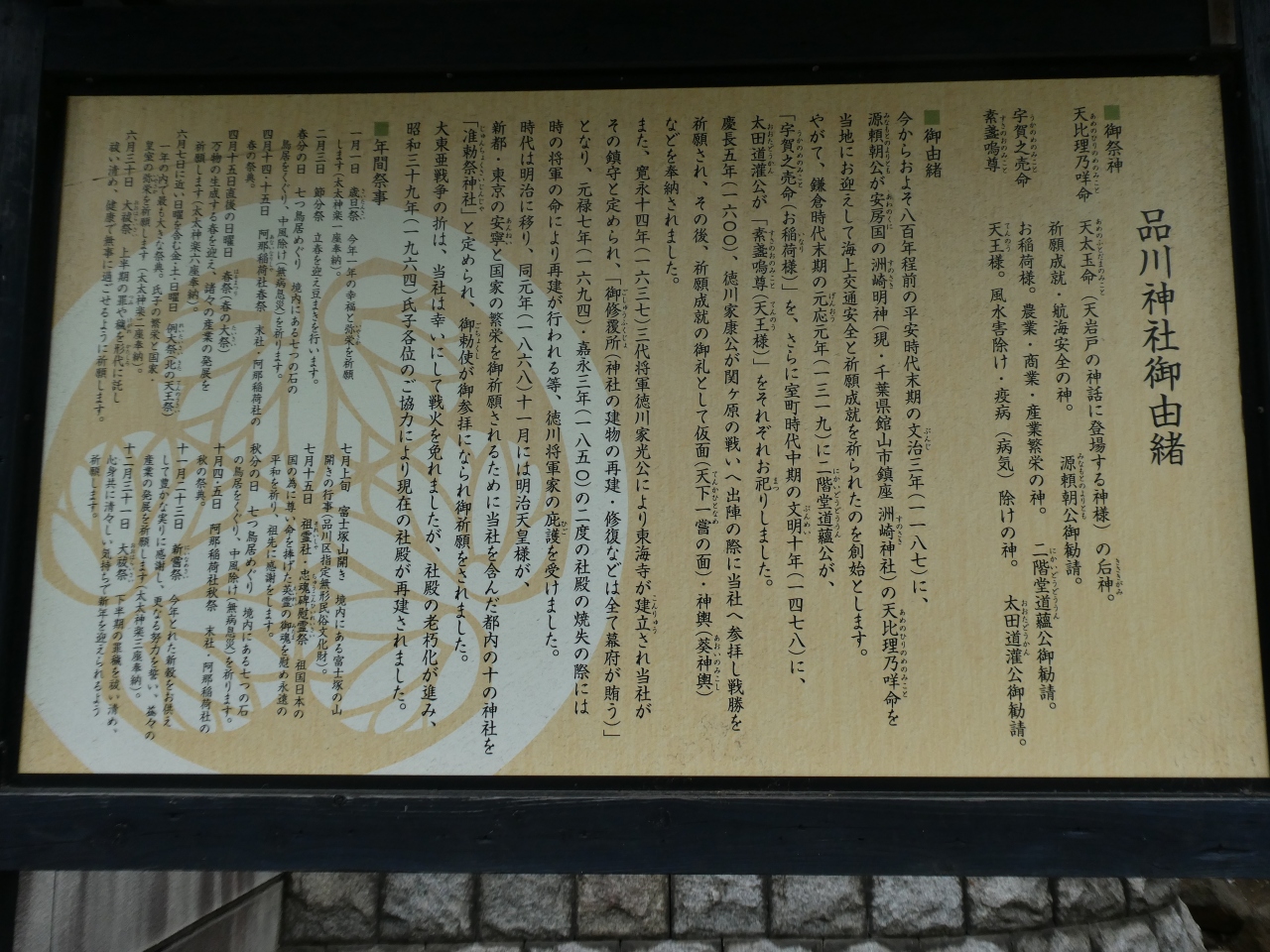 新馬場駅北西の道路沿いにある。文治3年(1185)に創建された。歩道横に石造の鳥居があり石段を登っていくと、奥に社殿が立っ... 続きを読むている。お勧めの点は、境内は広く境内社の猿田彦神社や御嶽神社、包丁塚、浅間神社、富士塚等があり高い木々が並び境内にいると心癒されること、参拝すれば願い事が叶うかもしれないこと、境内の掲示物などを読むこと等により品川神社の信仰や特徴について理解を深められること、社殿は昔ながらのデザインの建物で特に神社建築に関心のある人にとっては訪問する価値があることである。訪問時の感想は参拝客がかなりいたが、立派な社殿や富士塚、境内社等をゆっくり見たり参拝することができ訪問して良かった。 閉じる