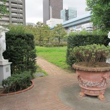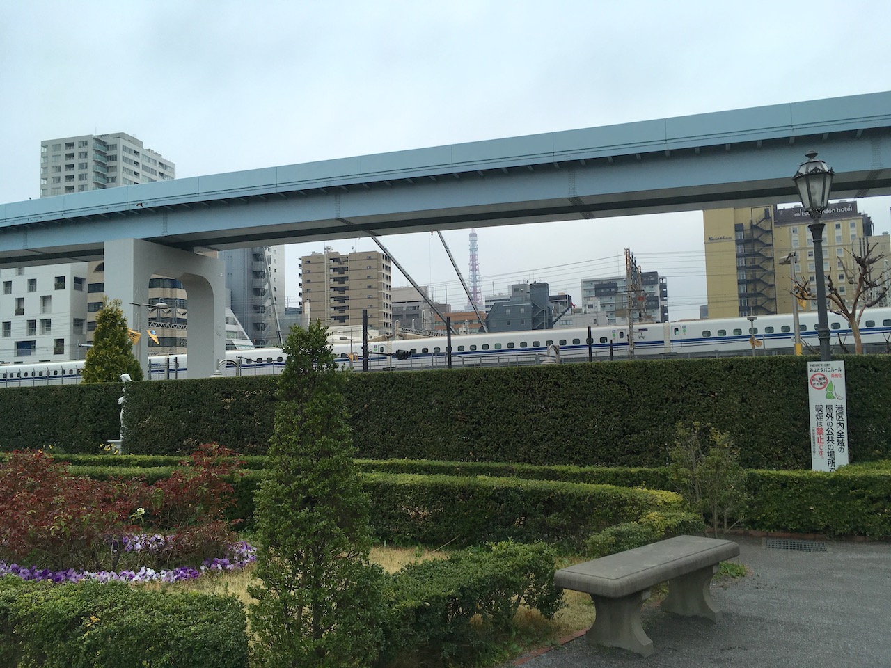 この公園から、JRの鉄道がひっきりなしに通るのを眺められます。