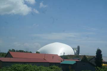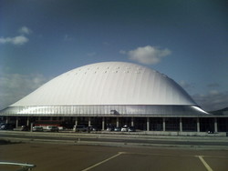 白いドーム型の建築物で、遠くからでも一際目立つ施設です。