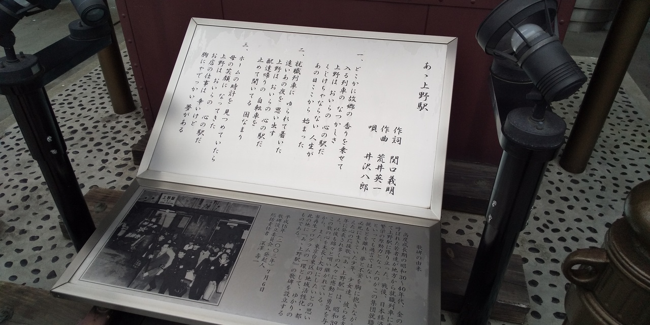 井沢八郎さんの【あゝ上野駅】の歌詞の書かれた碑