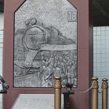 機関車と集団就職者を描いてます。