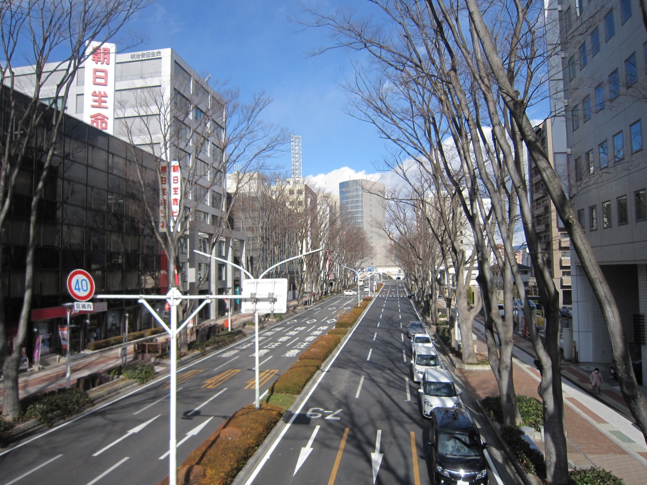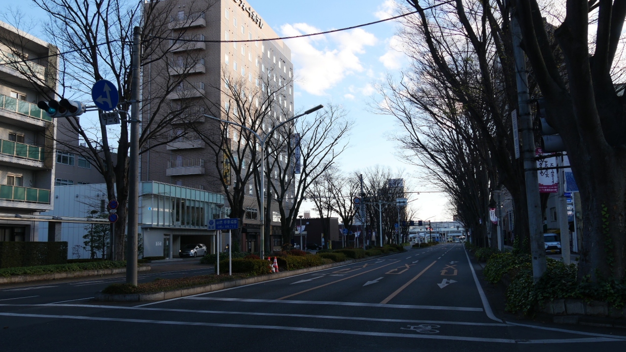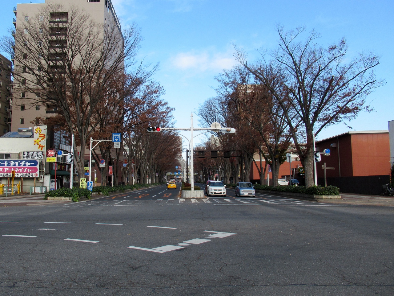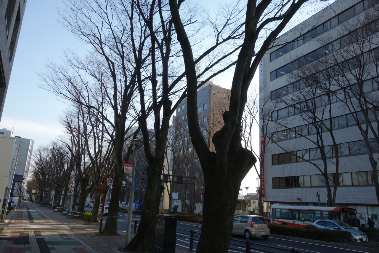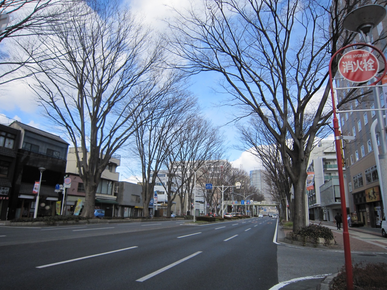 前橋駅から中央前橋方面へ向かう美しい並木道
