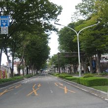道の両側に続くどっしりとしたケヤキのりっぱさとゆったりした歩道の見事さ