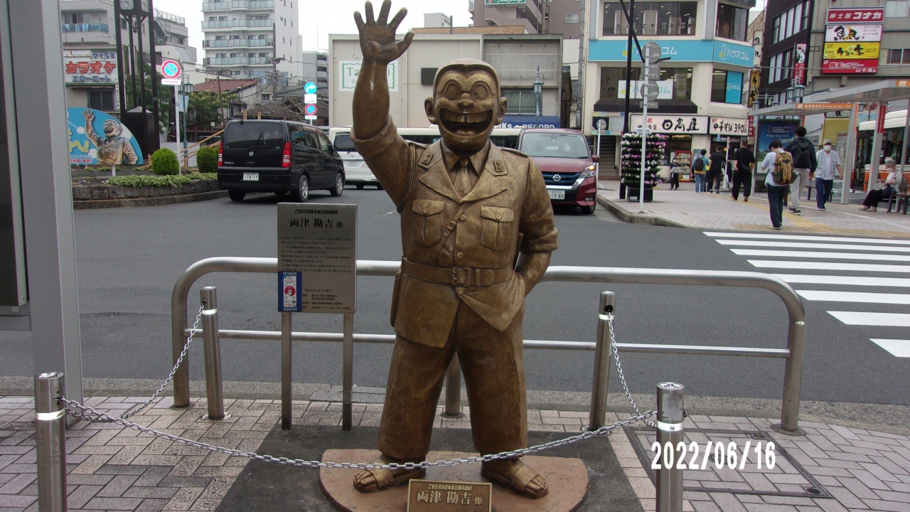 JR「亀有駅」の改札口を出て左方向に進むと「亀有駅北口」です。「亀有駅北口」を出るとすぐ正面の目の前に、「両津勘吉像」があ... 続きを読むります。片手を挙げ、「よお、お帰り!」とでも言っているような気さくで、温かい笑顔で出迎えてくれます。雪駄を履いた警察官はまずいないと思いますが、両さんには警察官に似つかわしくないカッコウが似合いますね。本当に、両さんの「よお」という掛け声が聞こえてくるような錯覚にとらわれます。また、北口のロータリーには、交通広場があり、両さんが「ようこそ亀有へ!」と出迎えてくれる看板もあります。「両津勘吉」は、「葛飾区亀有公園前派出所」に勤務する巡査長です。「両津勘吉」は、東京都台東区千束の佃煮屋「よろづや」を営む両津家の長男として生まれました。「両津勘吉」の身体的特徴は、角刈り、大きな目、体毛が濃く、そして、何と言っても左右つながった極太の一本眉毛です。「両津勘吉」は、常人離れした体力と生命力を持っているほか、外見とは違い、手先が器用で多数の資格や免許を持っています。そして、いたずらと金儲けが大好きで詐欺まがいな行動も多い反面、正義感は子供の頃から強く、困っている女性やいじめられっ子などには体を張って守るなど、義理人情に厚く困っている者を放っておけない性格で下町の住民からの人望も厚く、愛されています。 閉じる