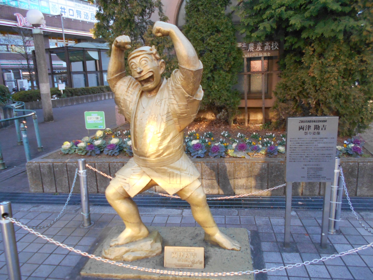 JR「亀有駅」の改札口を出て左方向に進むと「亀有駅北口」です。「亀有駅北口」を出るとすぐ正面の目の前に、「両津勘吉像」があ... 続きを読むります。片手を挙げ、「よお、お帰り!」とでも言っているような気さくで、温かい笑顔で出迎えてくれます。雪駄を履いた警察官はまずいないと思いますが、両さんには警察官に似つかわしくないカッコウが似合いますね。本当に、両さんの「よお」という掛け声が聞こえてくるような錯覚にとらわれます。また、北口のロータリーには、交通広場があり、両さんが「ようこそ亀有へ!」と出迎えてくれる看板もあります。「両津勘吉」は、「葛飾区亀有公園前派出所」に勤務する巡査長です。「両津勘吉」は、東京都台東区千束の佃煮屋「よろづや」を営む両津家の長男として生まれました。「両津勘吉」の身体的特徴は、角刈り、大きな目、体毛が濃く、そして、何と言っても左右つながった極太の一本眉毛です。「両津勘吉」は、常人離れした体力と生命力を持っているほか、外見とは違い、手先が器用で多数の資格や免許を持っています。そして、いたずらと金儲けが大好きで詐欺まがいな行動も多い反面、正義感は子供の頃から強く、困っている女性やいじめられっ子などには体を張って守るなど、義理人情に厚く困っている者を放っておけない性格で下町の住民からの人望も厚く、愛されています。 閉じる