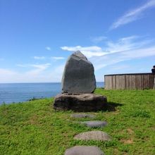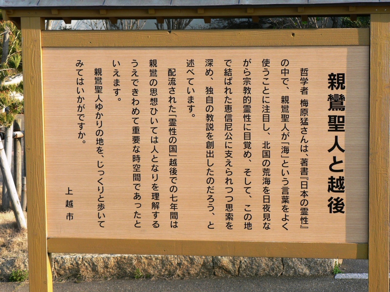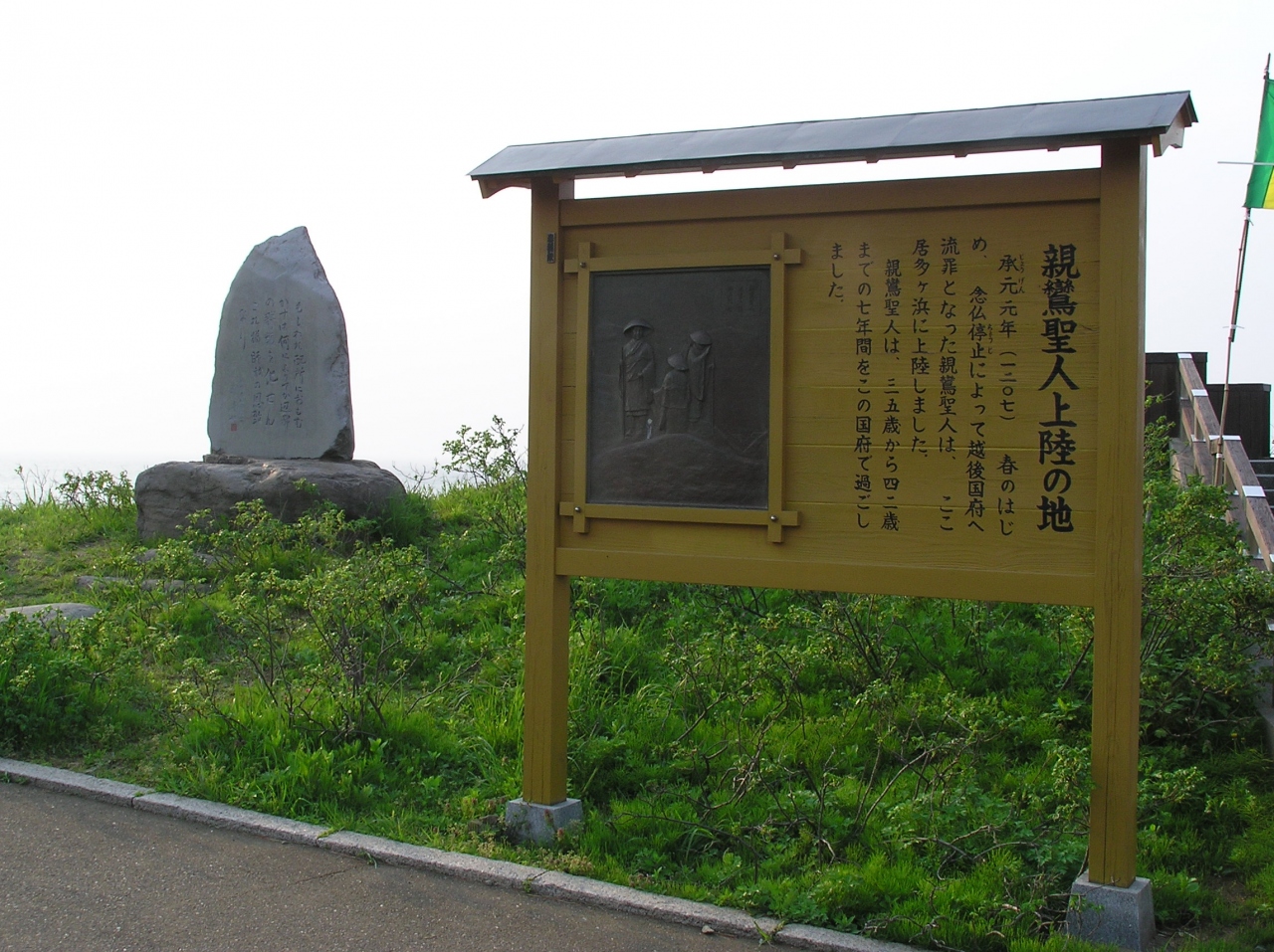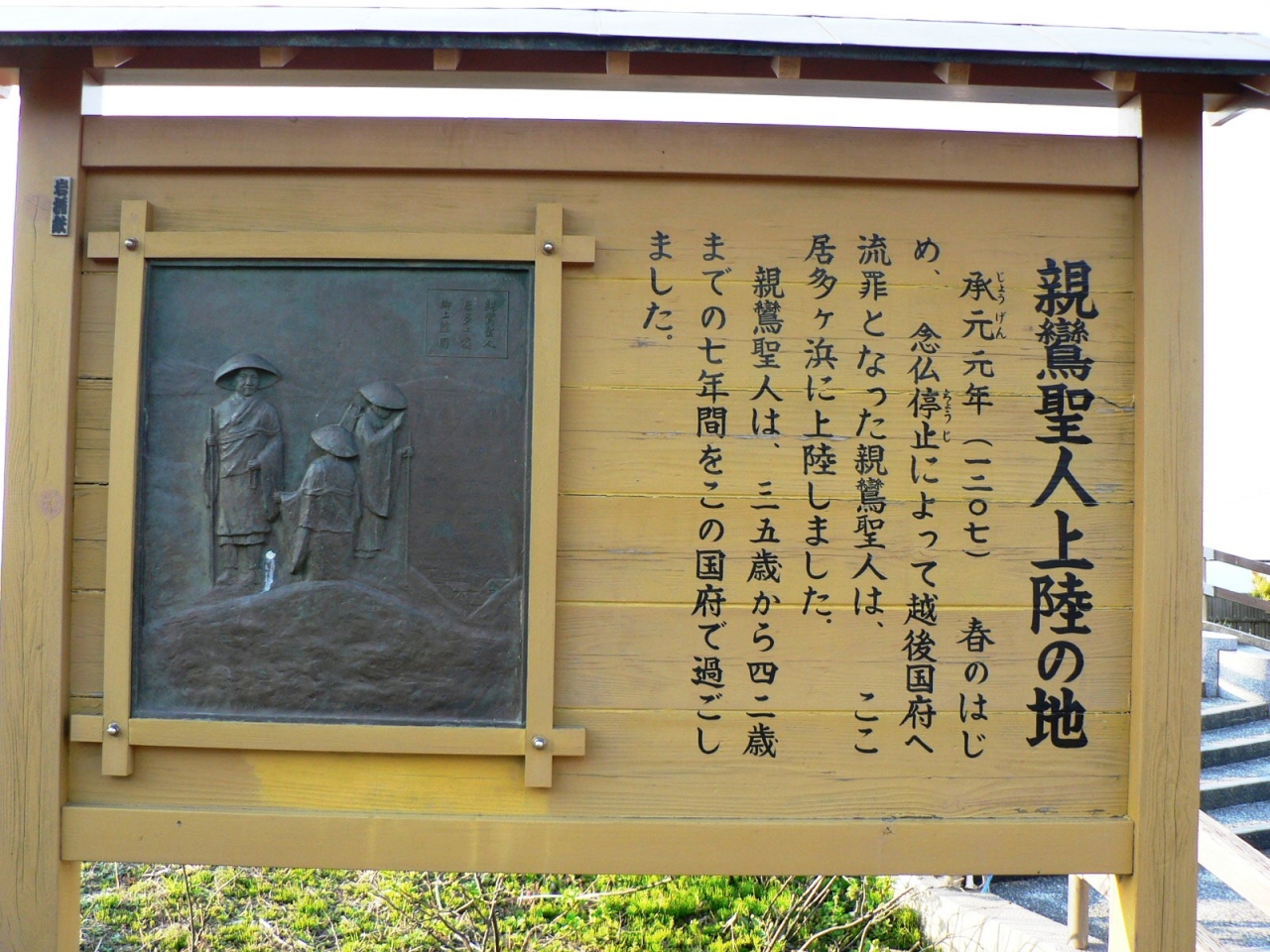 「親鸞聖人居多ヶ浜御上陸の図」のレリーフがある居多ヶ浜