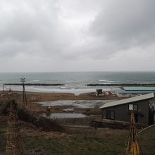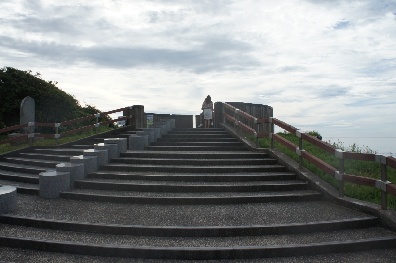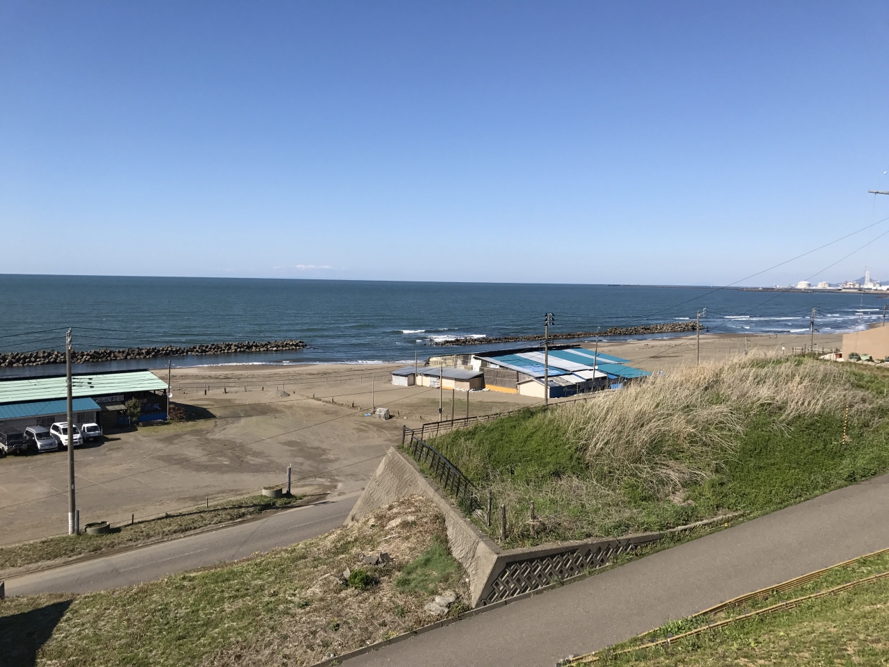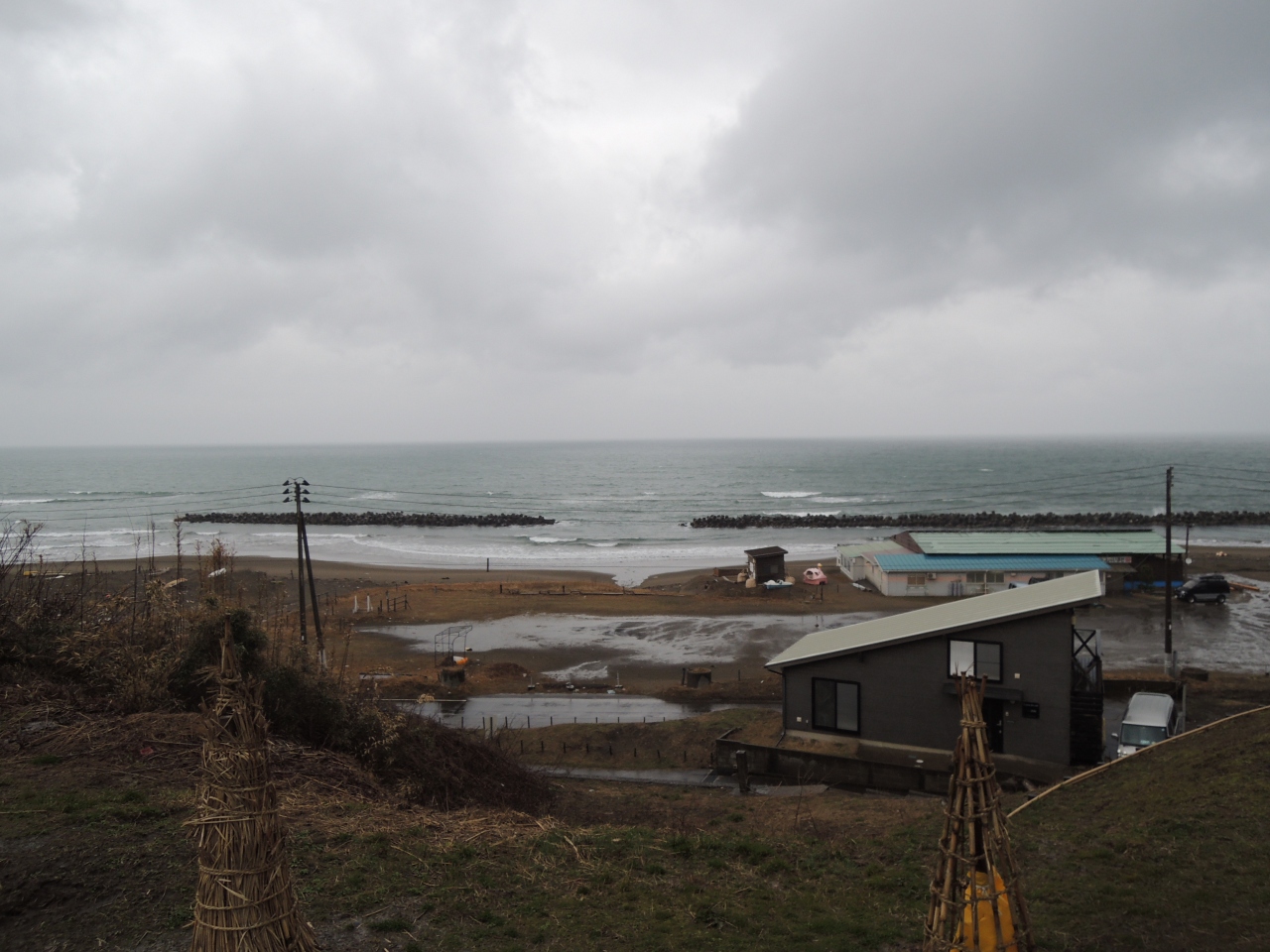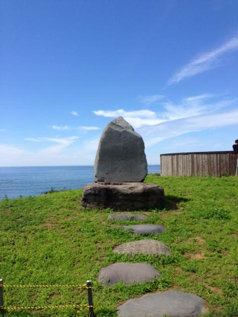「親鸞聖人居多ヶ浜御上陸の図」のレリーフがある居多ヶ浜