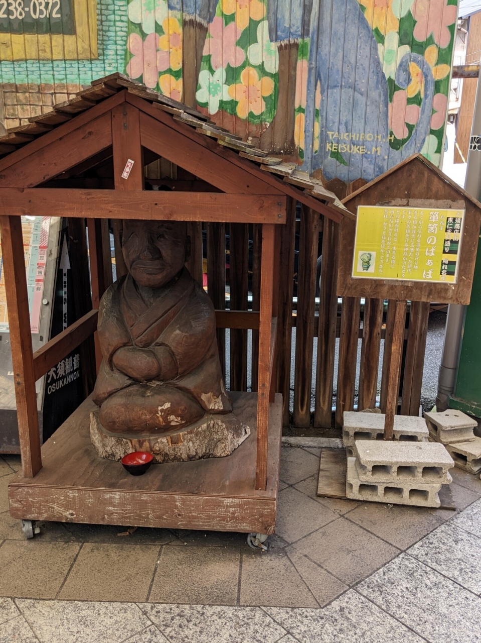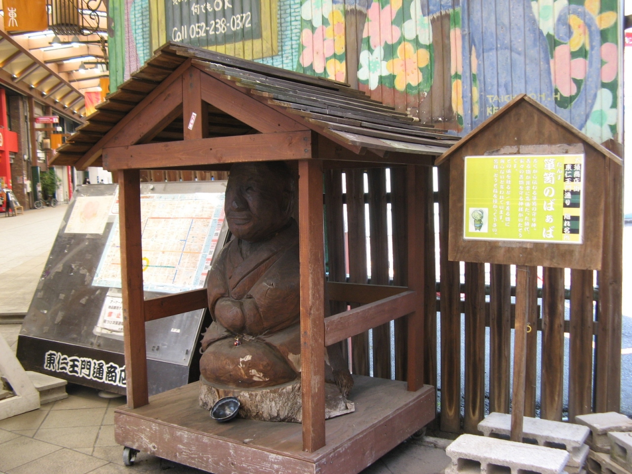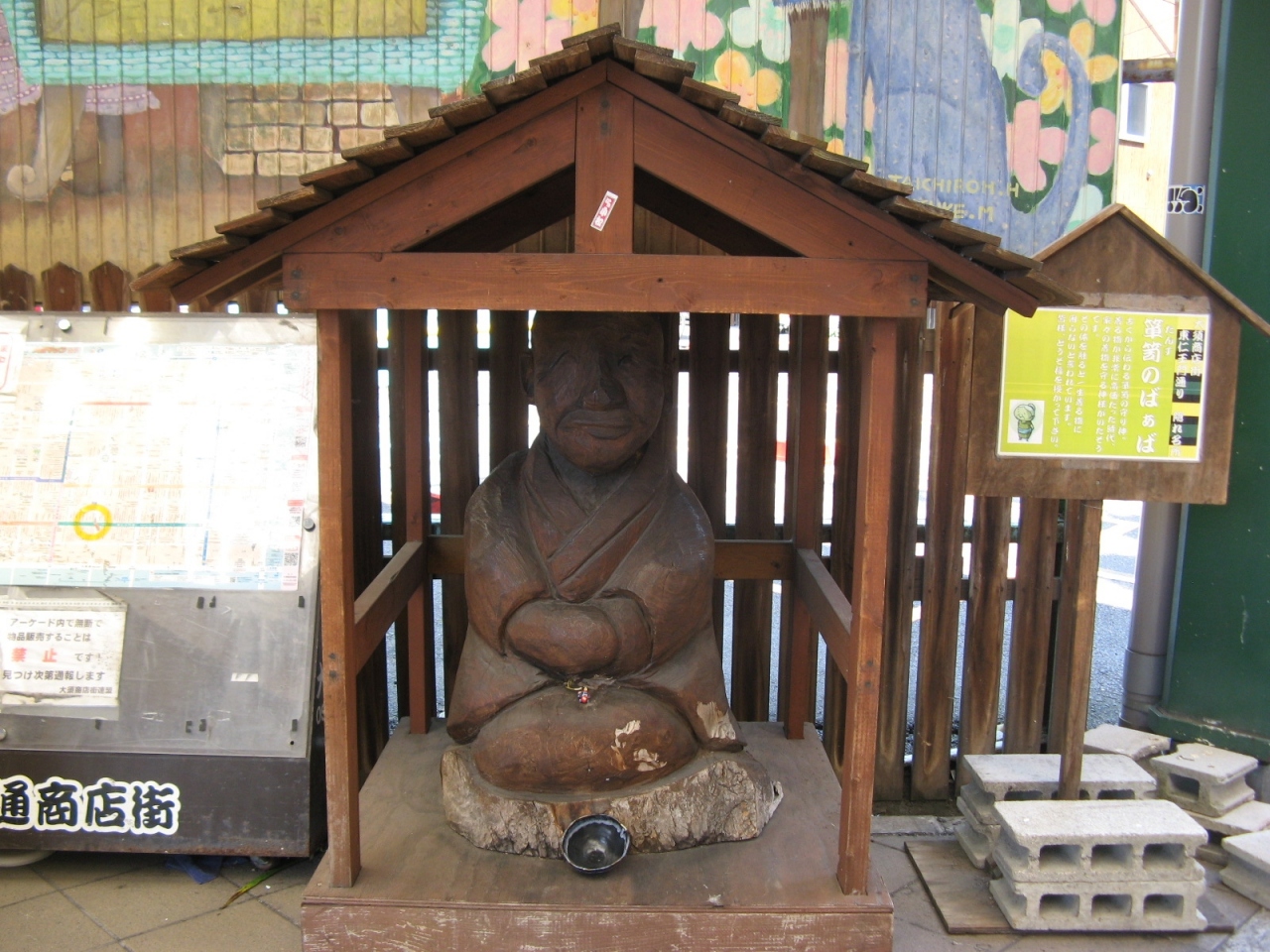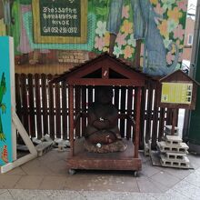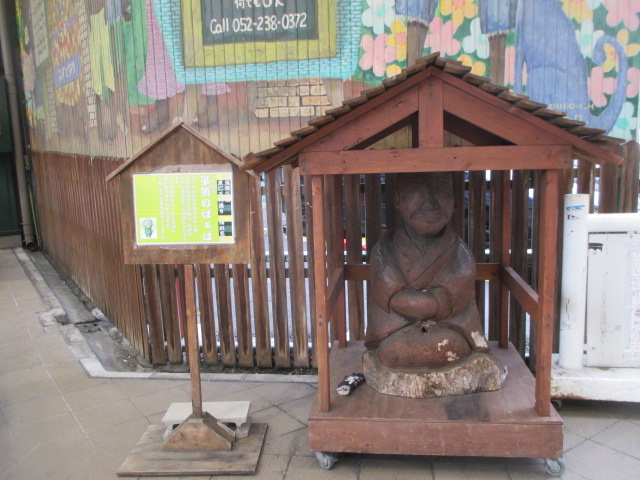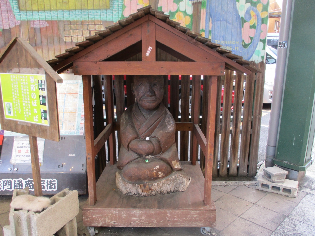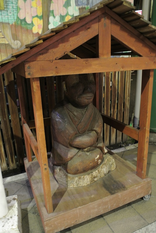 商店街のなかにある箪笥の守り神 前に道路標示が置かれてました