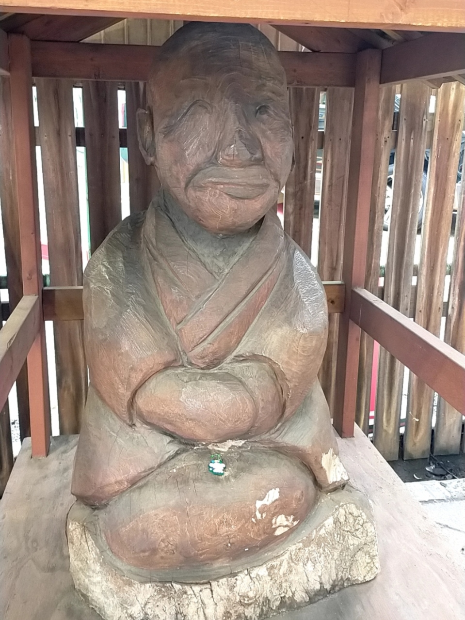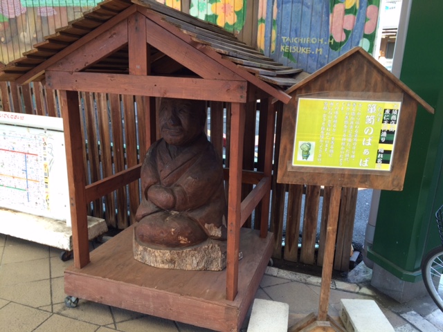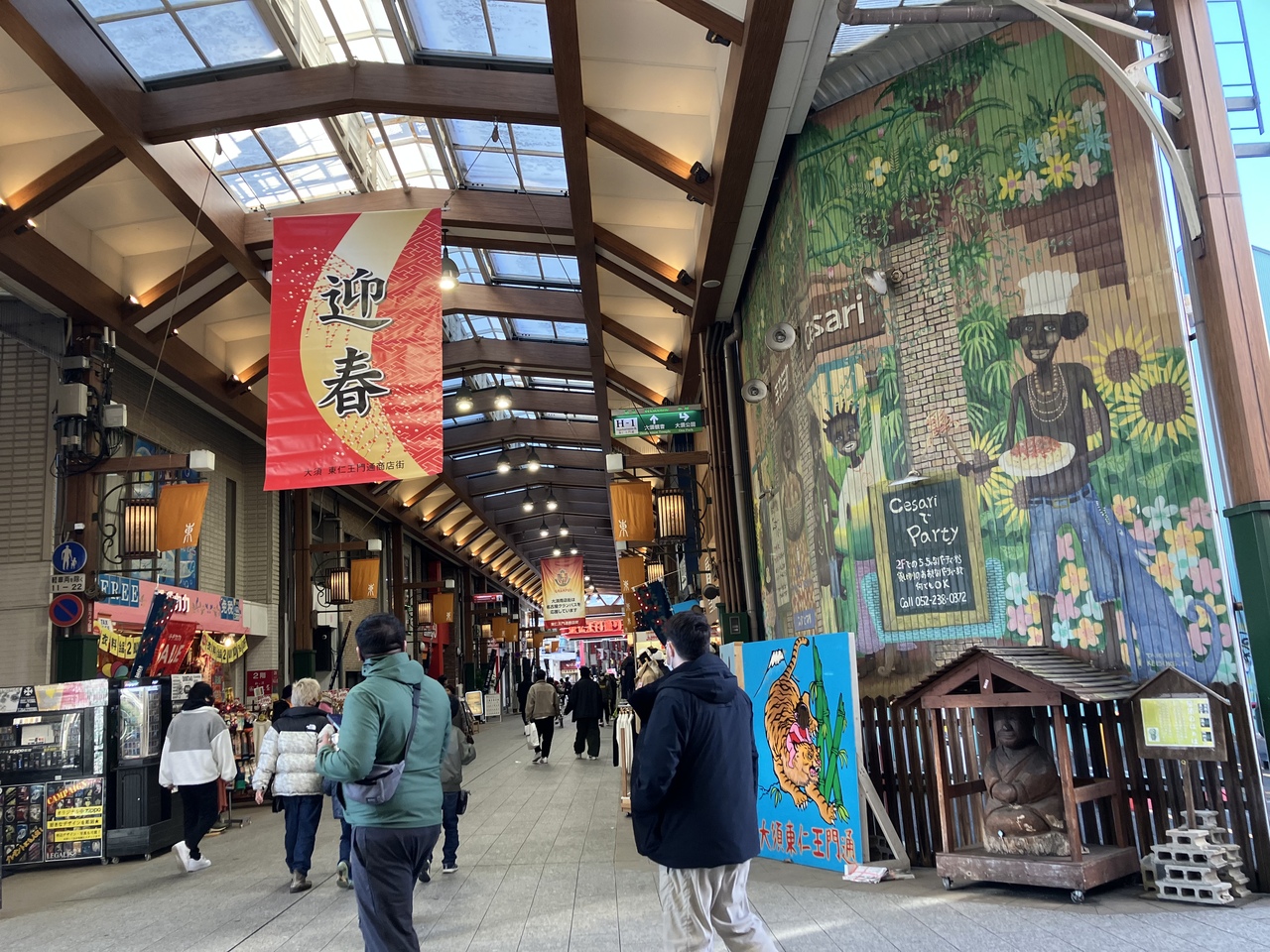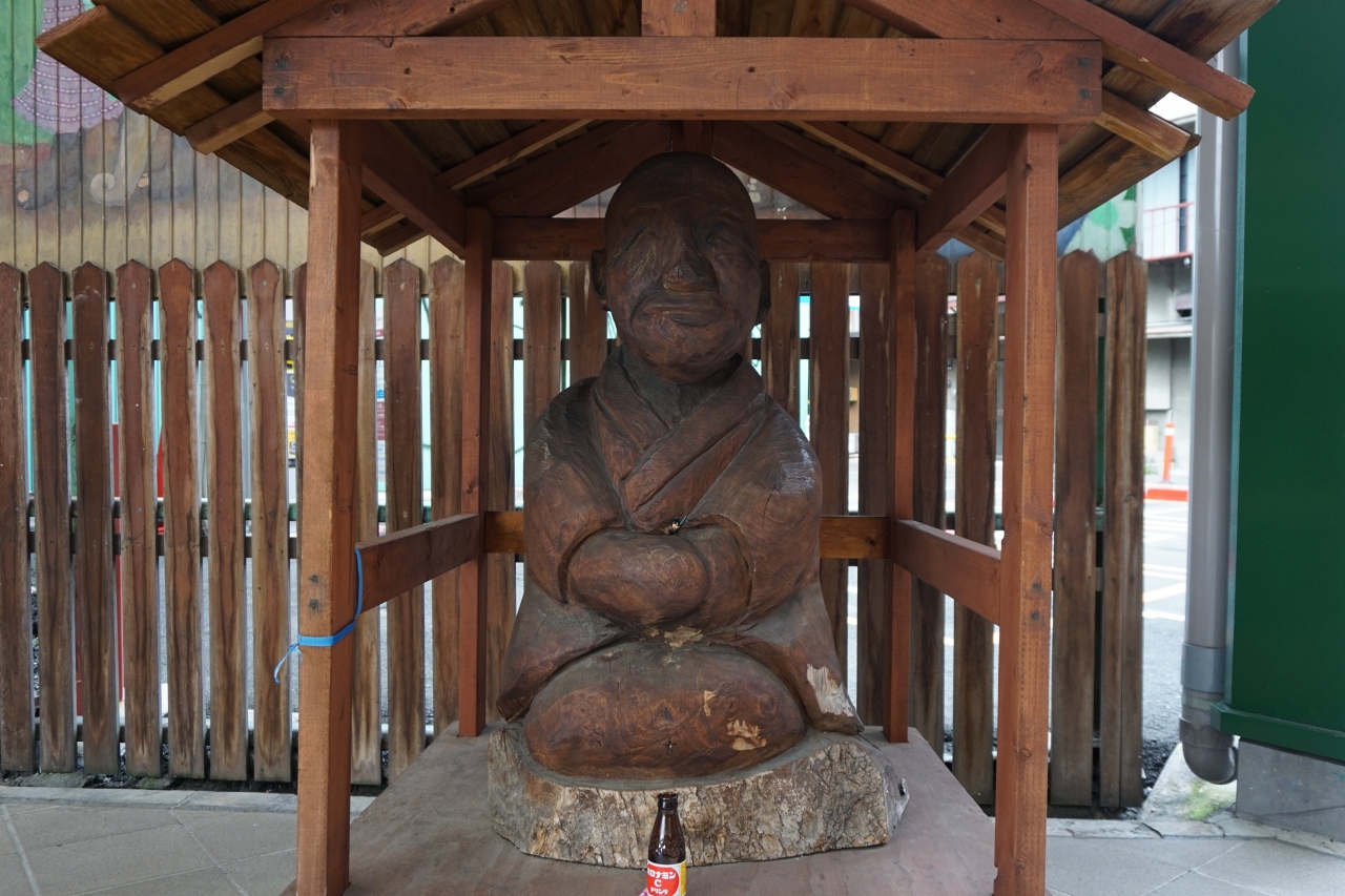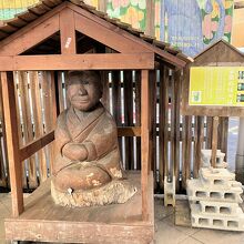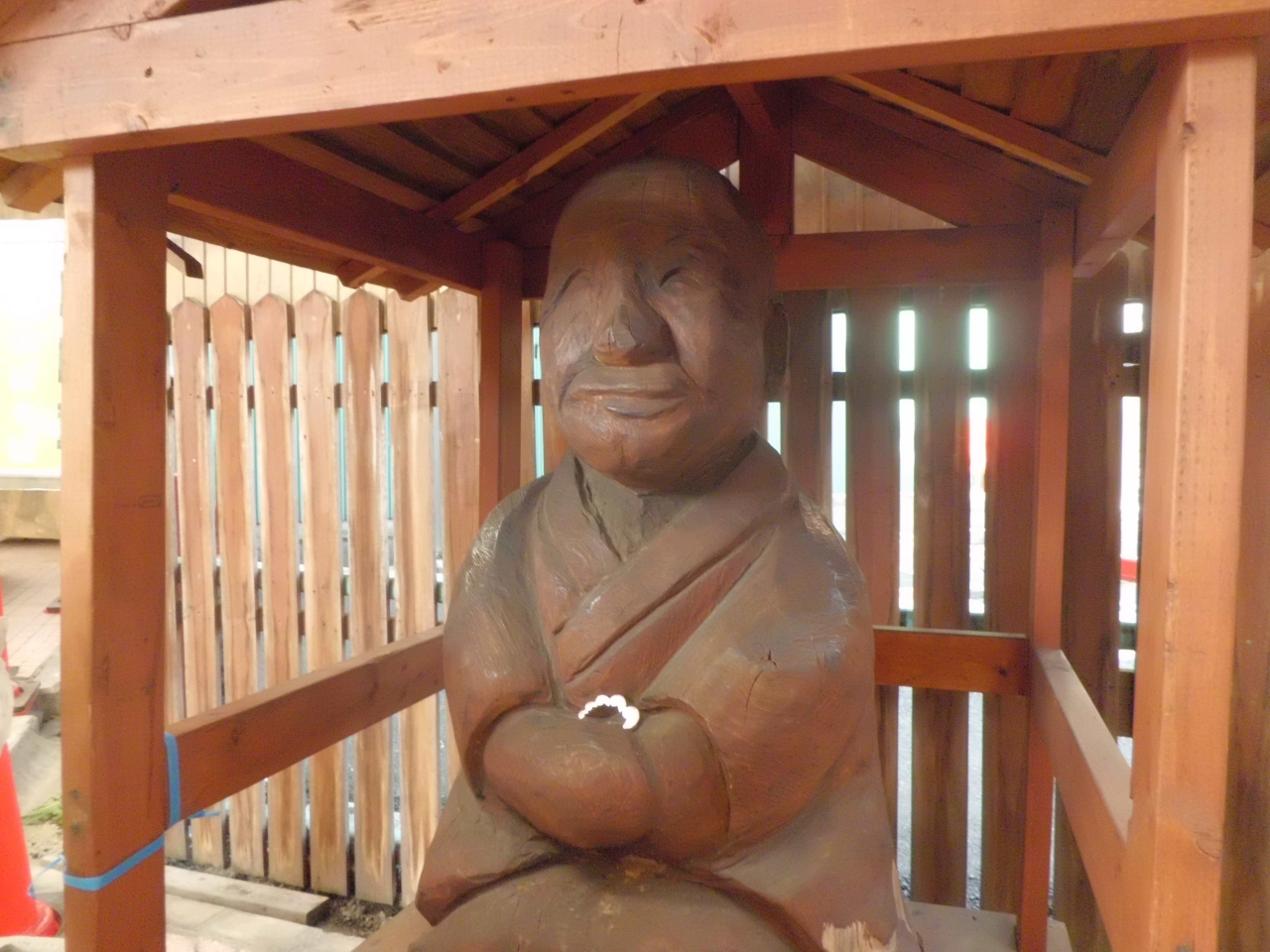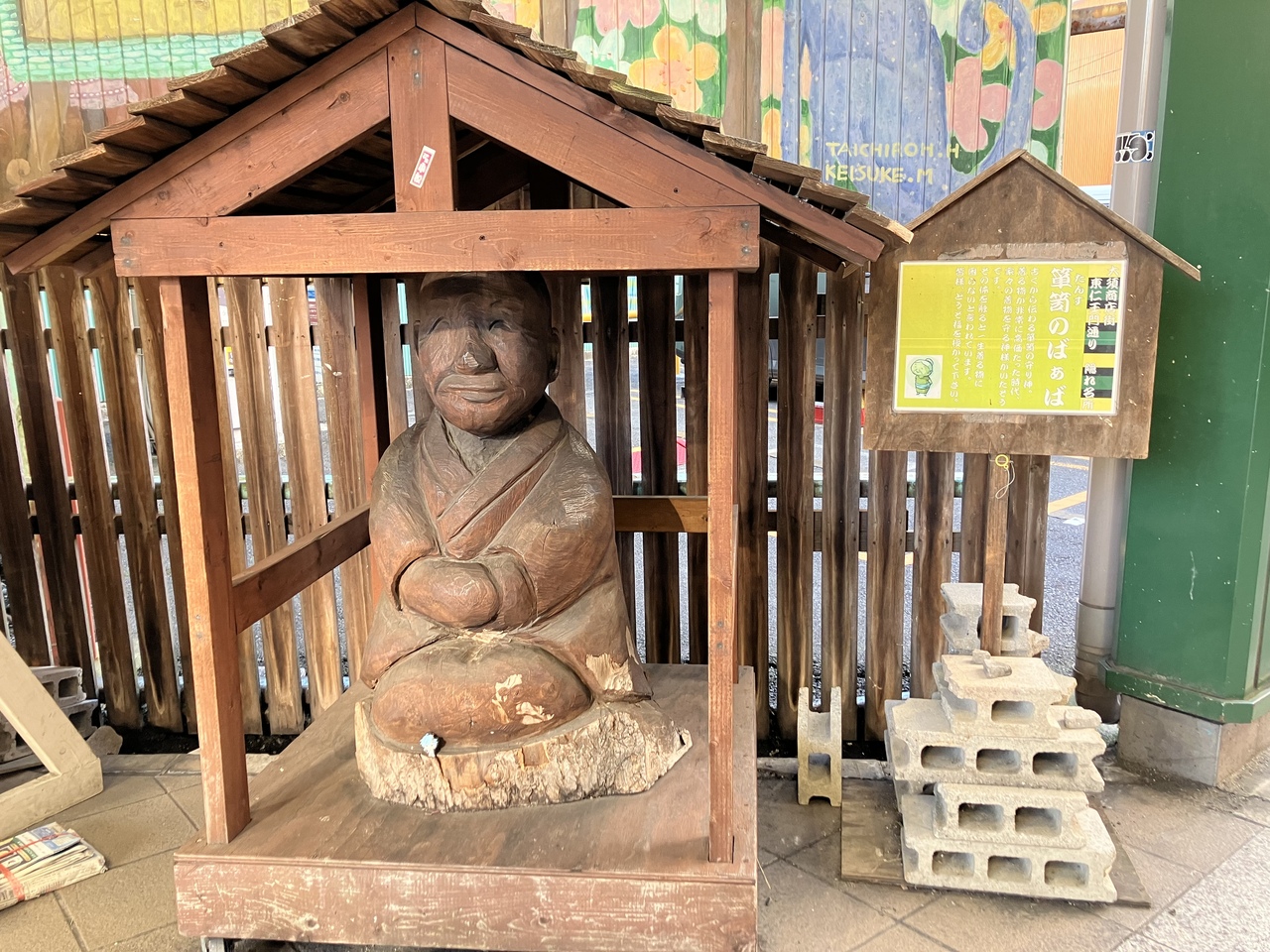 商店街のなかにある箪笥の守り神 前に道路標示が置かれてました