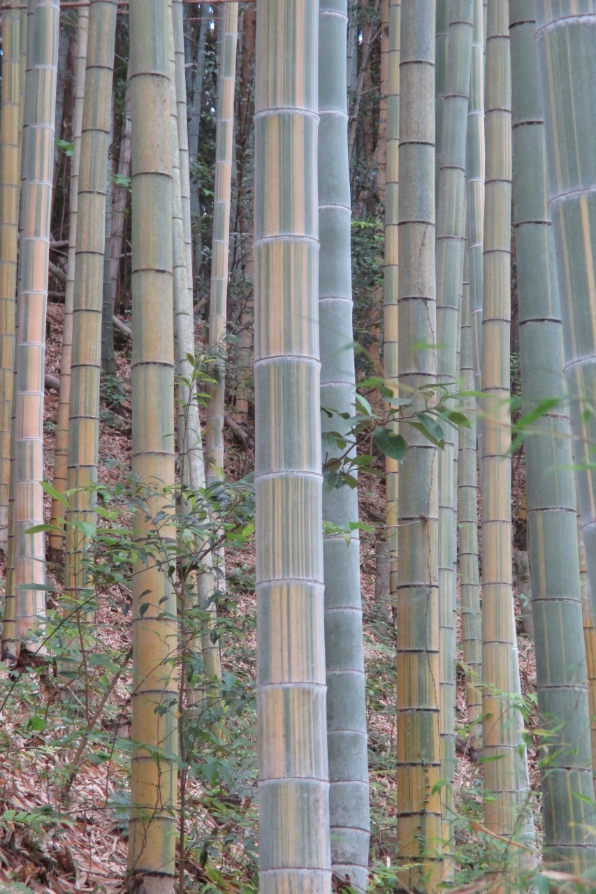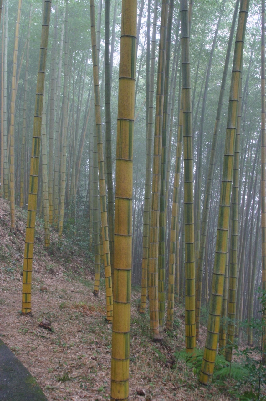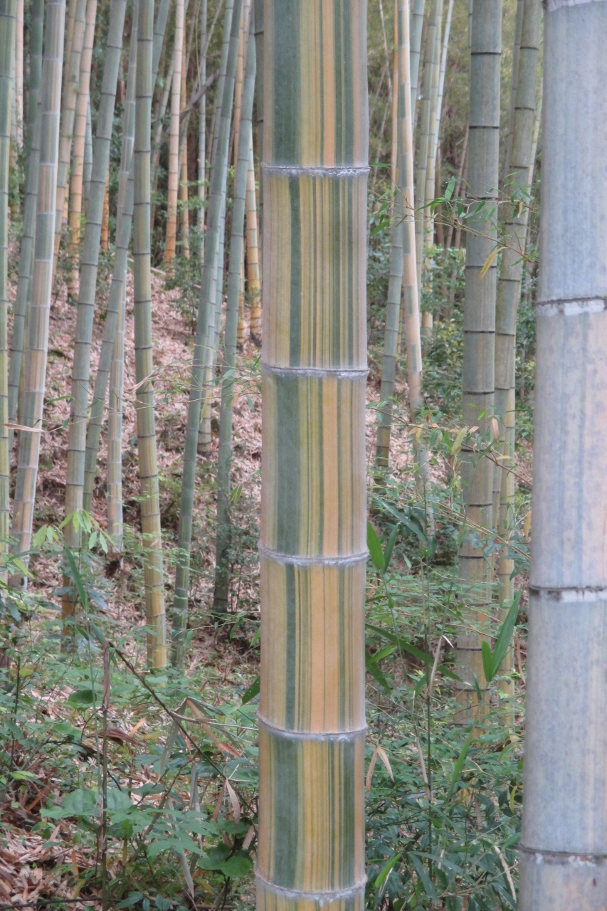 金明孟宗竹は、九重塔からもう少し左手奥に進んだところにありました。前に規模の小さいところを見たことがありますが、ここは今現... 続きを読む在は何本くらいあるのか、規模が大きくてたいへん見応えがありました。全体に黄色く一節毎に緑色の条線の入るキンメイチク型と、全体に黄色で緑色の条線の入る縦縞型があるとのことですが、ほとんどが縦縞型の様に見えます。見上げると、葉も黄色っぽい様に見えます。ここは1970年(昭和45年)ころに自生しているのが見付かったそうですね。突然変異でこうなるそうですから、竹林の所有者は枯れたか?と思ったのではないでしょうかね。県の特別保護林に指定されていました。 閉じる