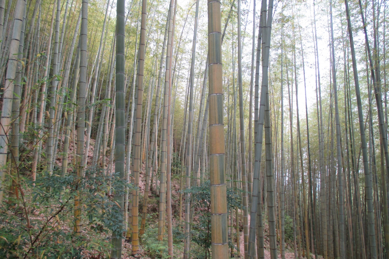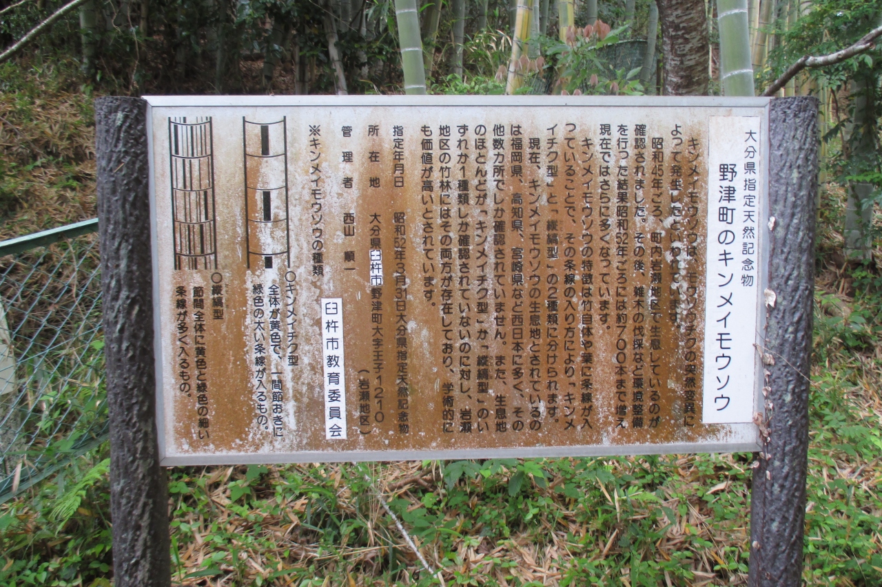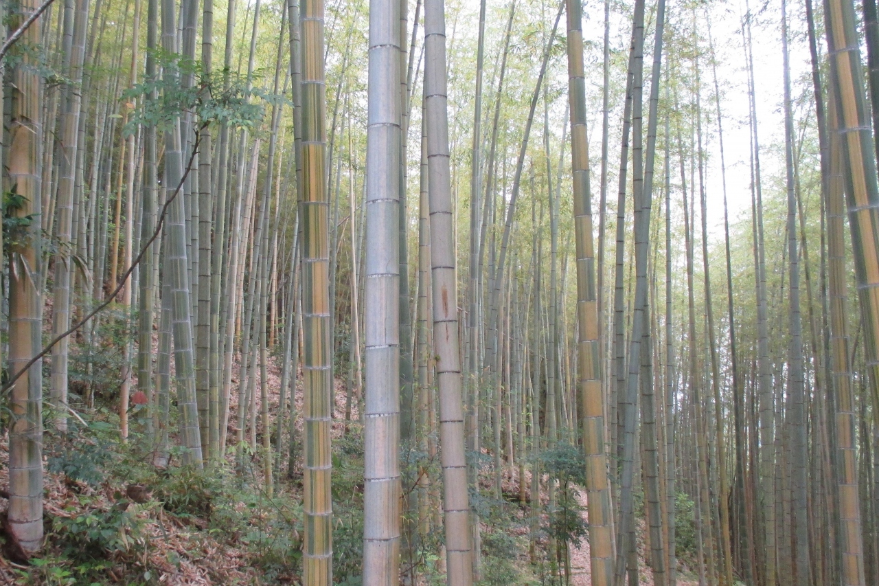 金明孟宗竹は、九重塔からもう少し左手奥に進んだところにありました。前に規模の小さいところを見たことがありますが、ここは今現... 続きを読む在は何本くらいあるのか、規模が大きくてたいへん見応えがありました。全体に黄色く一節毎に緑色の条線の入るキンメイチク型と、全体に黄色で緑色の条線の入る縦縞型があるとのことですが、ほとんどが縦縞型の様に見えます。見上げると、葉も黄色っぽい様に見えます。ここは1970年(昭和45年)ころに自生しているのが見付かったそうですね。突然変異でこうなるそうですから、竹林の所有者は枯れたか?と思ったのではないでしょうかね。県の特別保護林に指定されていました。 閉じる