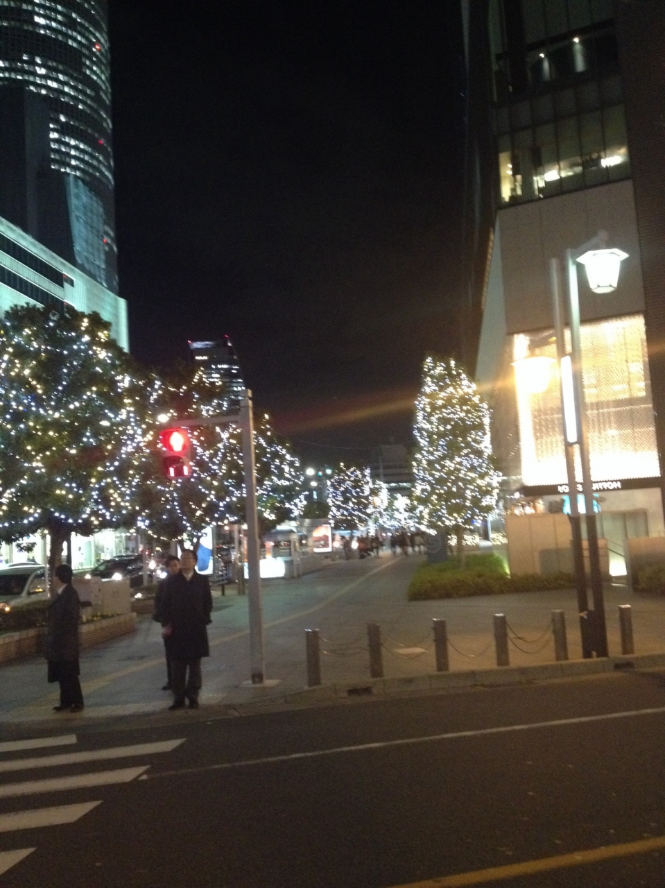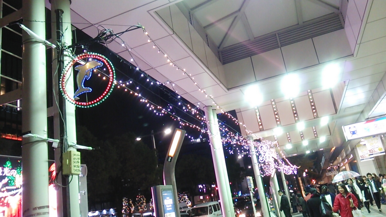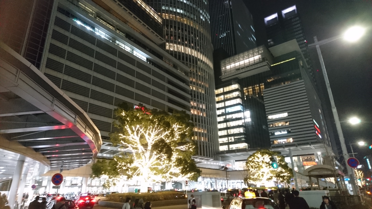 駅周辺全体が昼間のような明るさで豪華な雰囲気でした