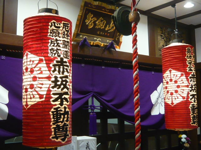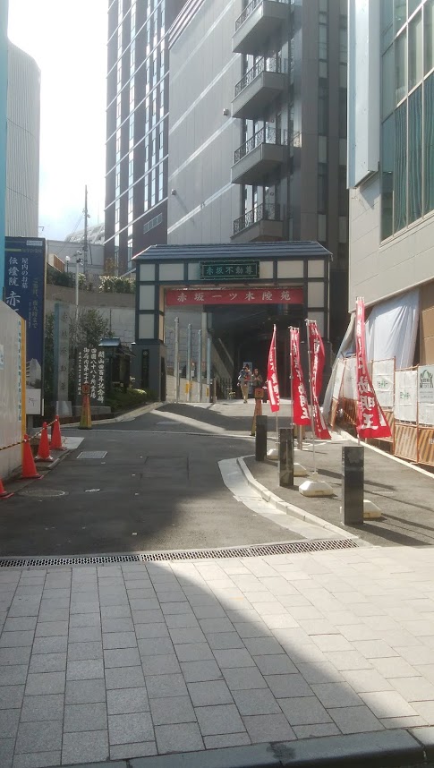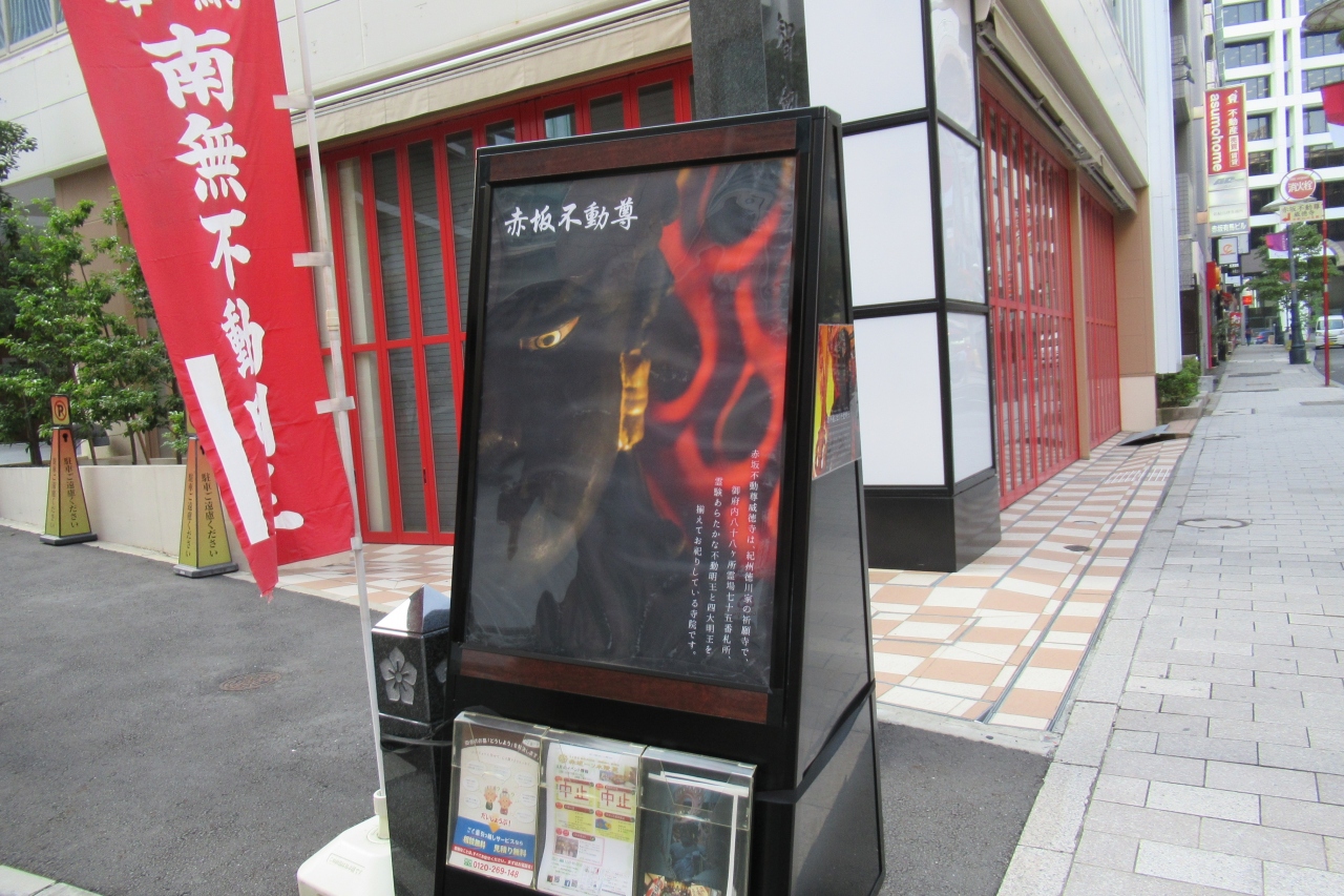 赤坂不動尊は、ガラス製の仕切りにより区分されていて、赤坂不動尊を、直接、拝するためには、さらに別の入口を経て、入る必要があります。