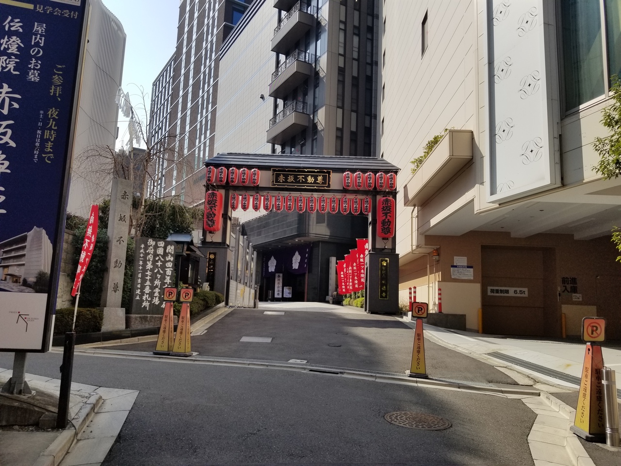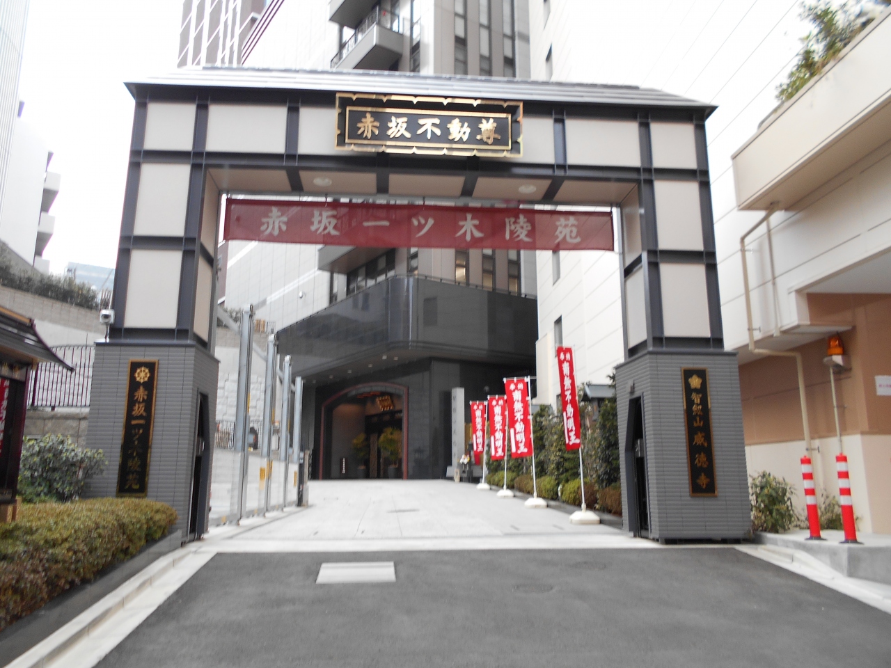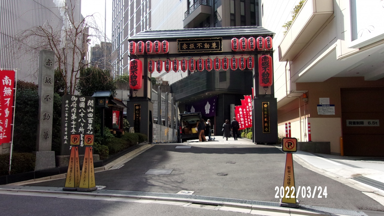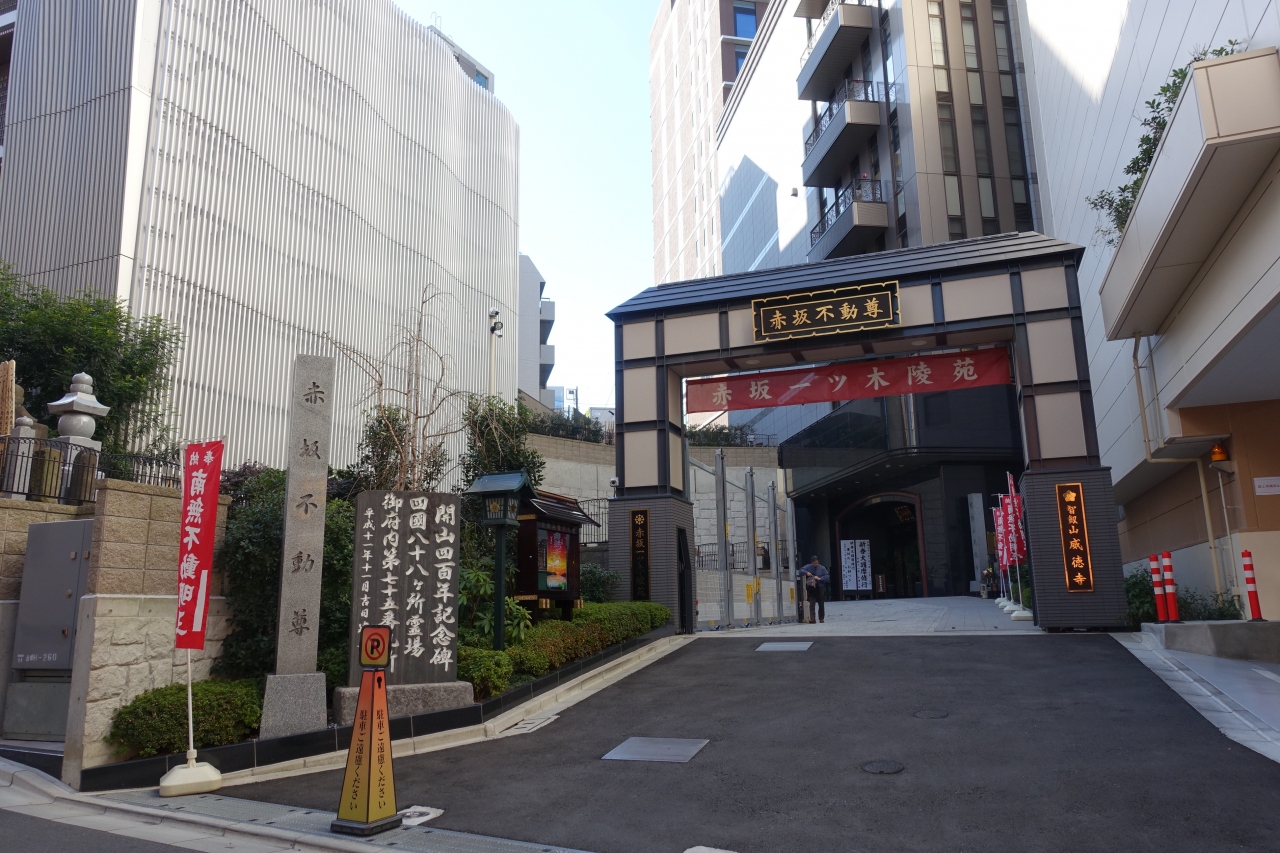 入口を入ると、左側に、赤坂不動尊の受付的な施設があります。