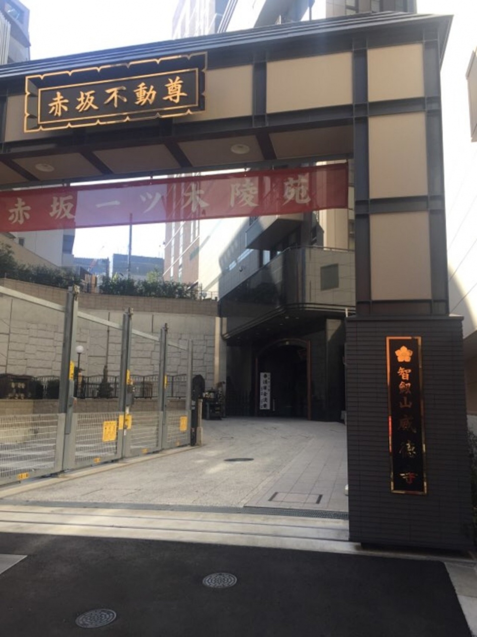 赤坂不動尊は、威徳寺の1階に収められています。マンションのような感じを受けています。