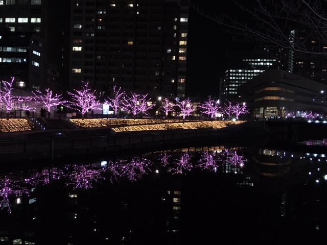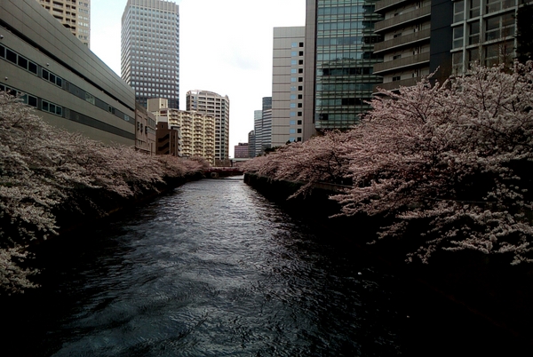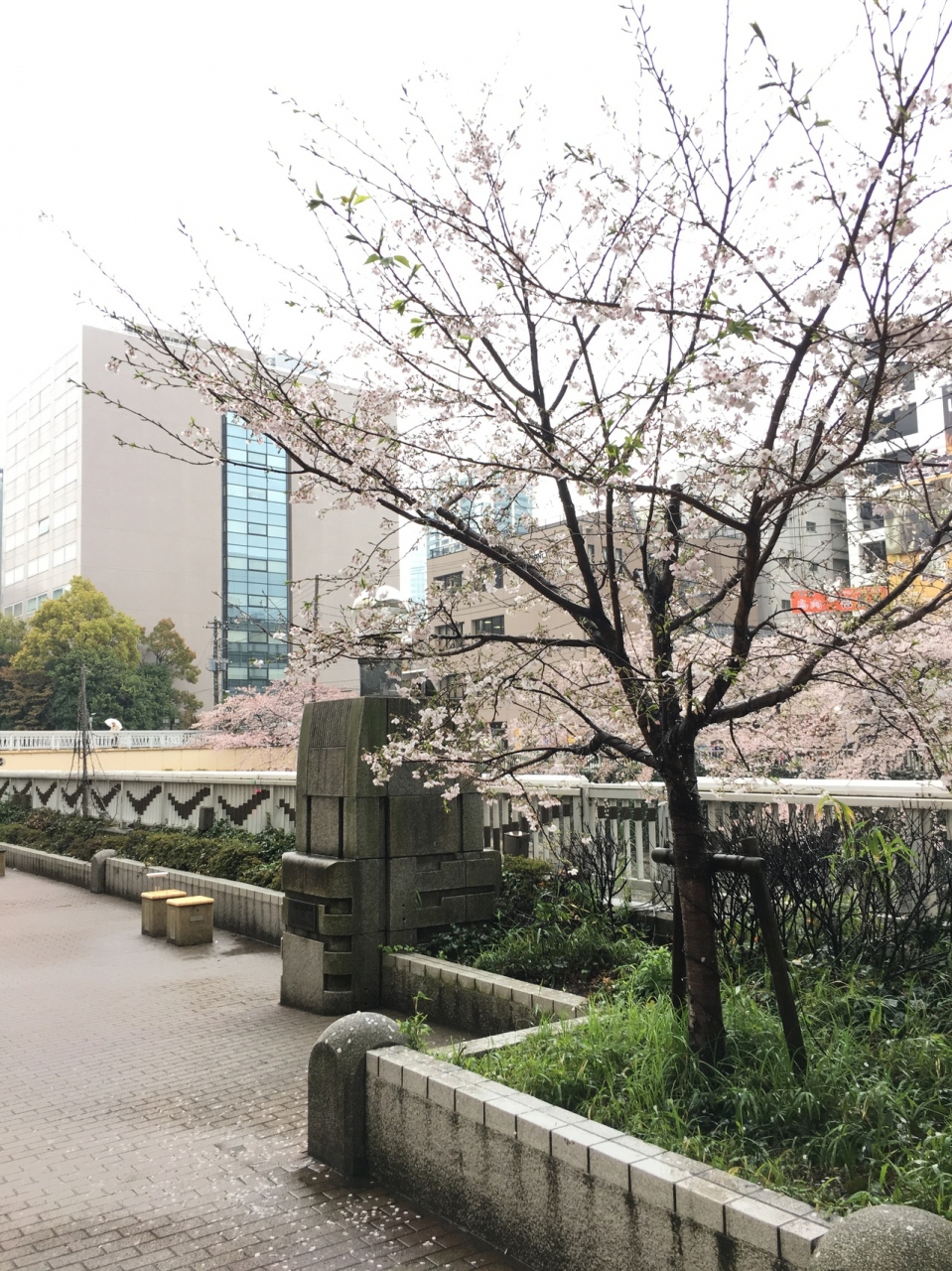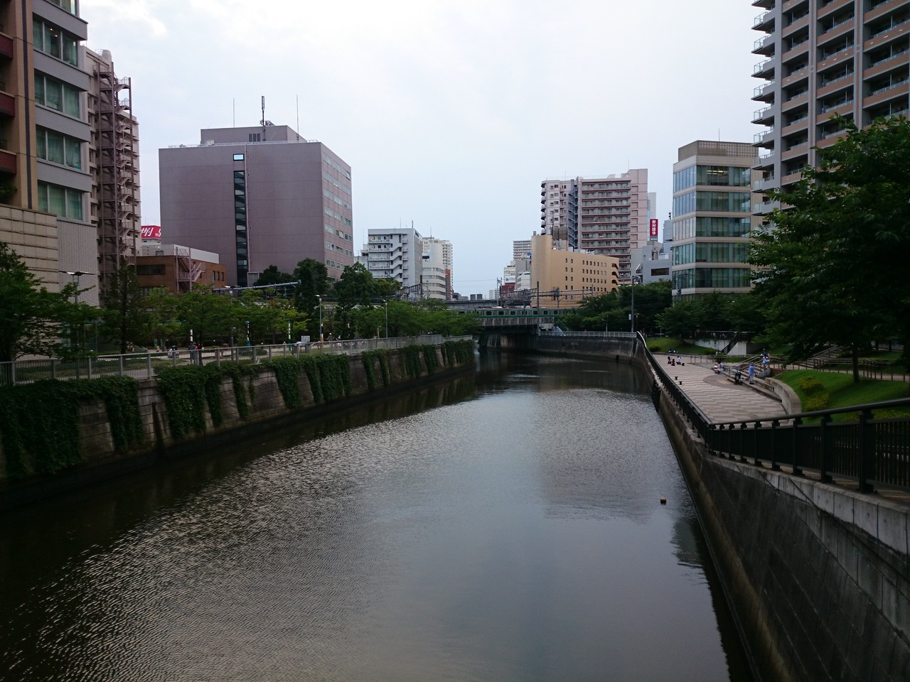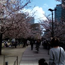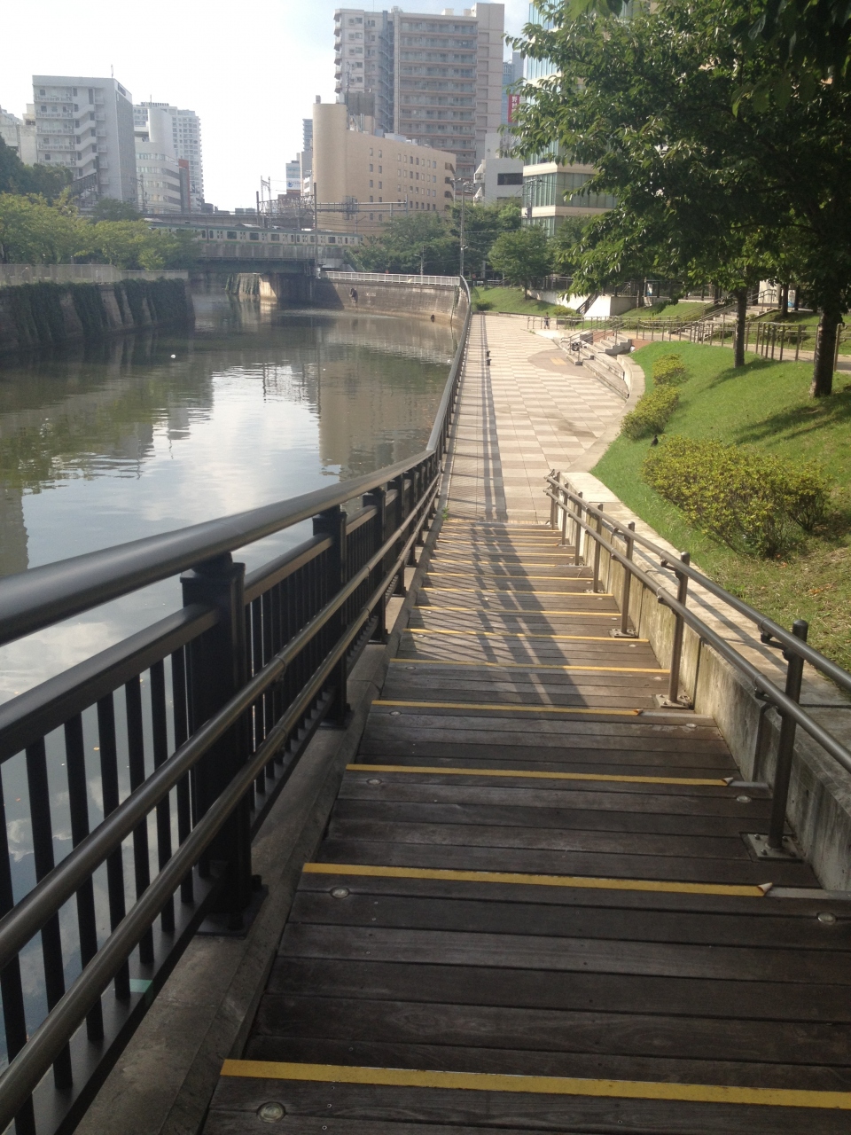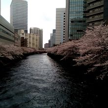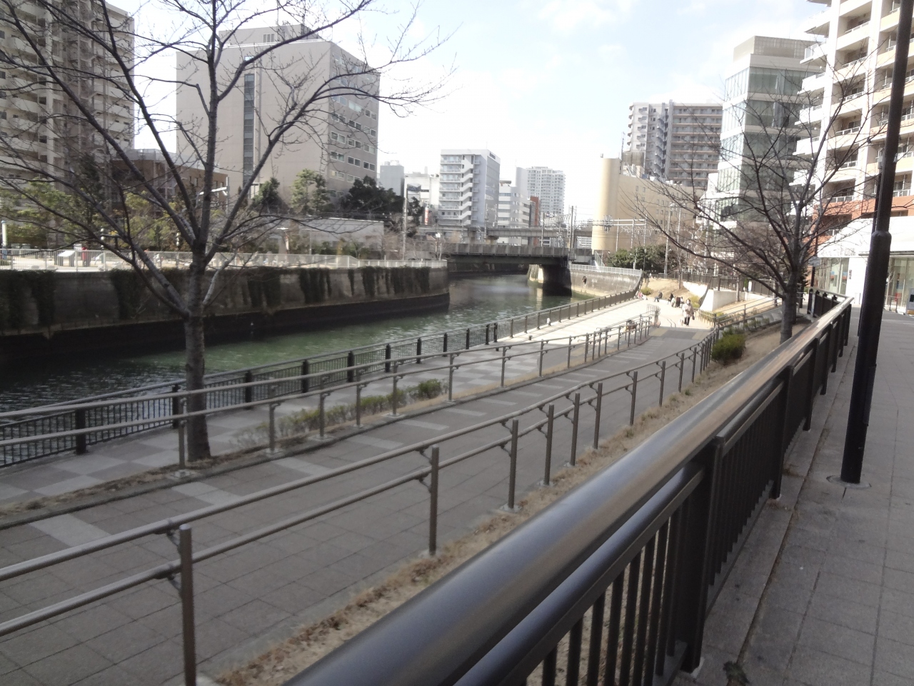 たまに、目黒川を水質調査船などの船もゆったりと通り、水辺公園としての趣があります。