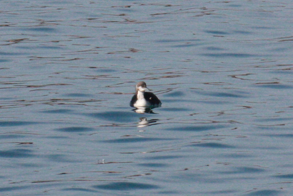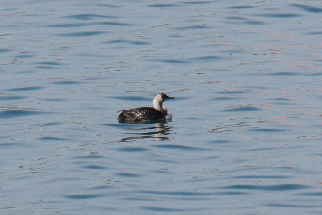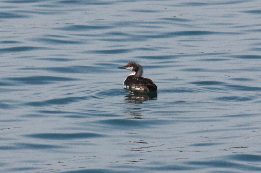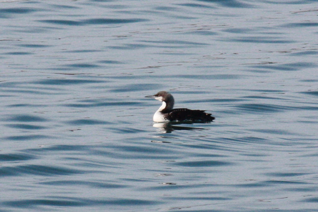 シロエリオオハム(白襟大波武)は、アビ目アビ科の野鳥で、冬鳥として九州以北の沿岸に渡来します。アビ類は北極圏の淡水の湖沼で繁殖し、冬季は南下する潜水する大型の水鳥のグループです。潜水することに特化した体のつくりで、足は後方についており、水かきがあります。日本で観察されるアビ類5種の中では、シロエリオオハムが最も多く観察されているそうです。