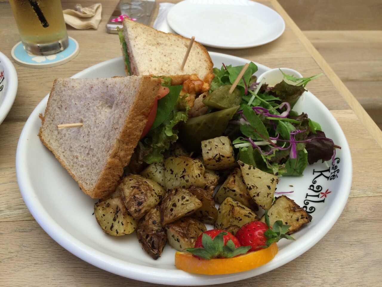チキンと野菜?だったとおもうけどクランベリージャムもサンドされてて