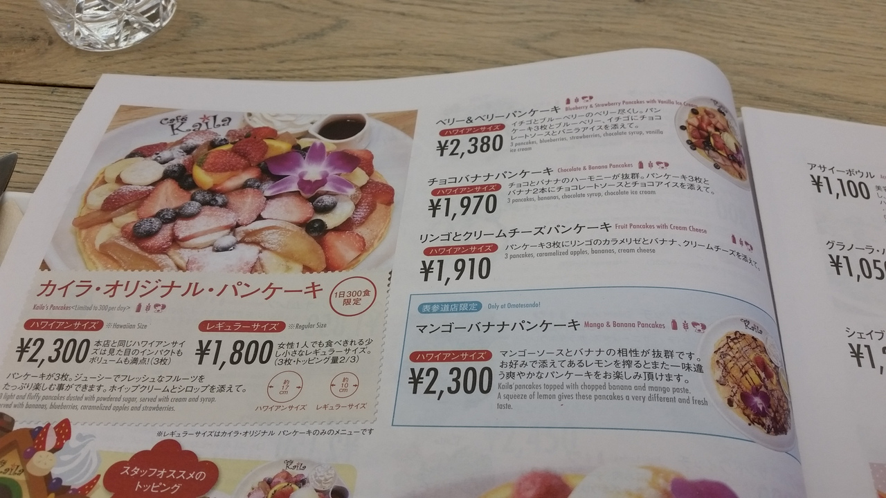 フルーツパンケーキはフルーツが甘くて美味しかった。