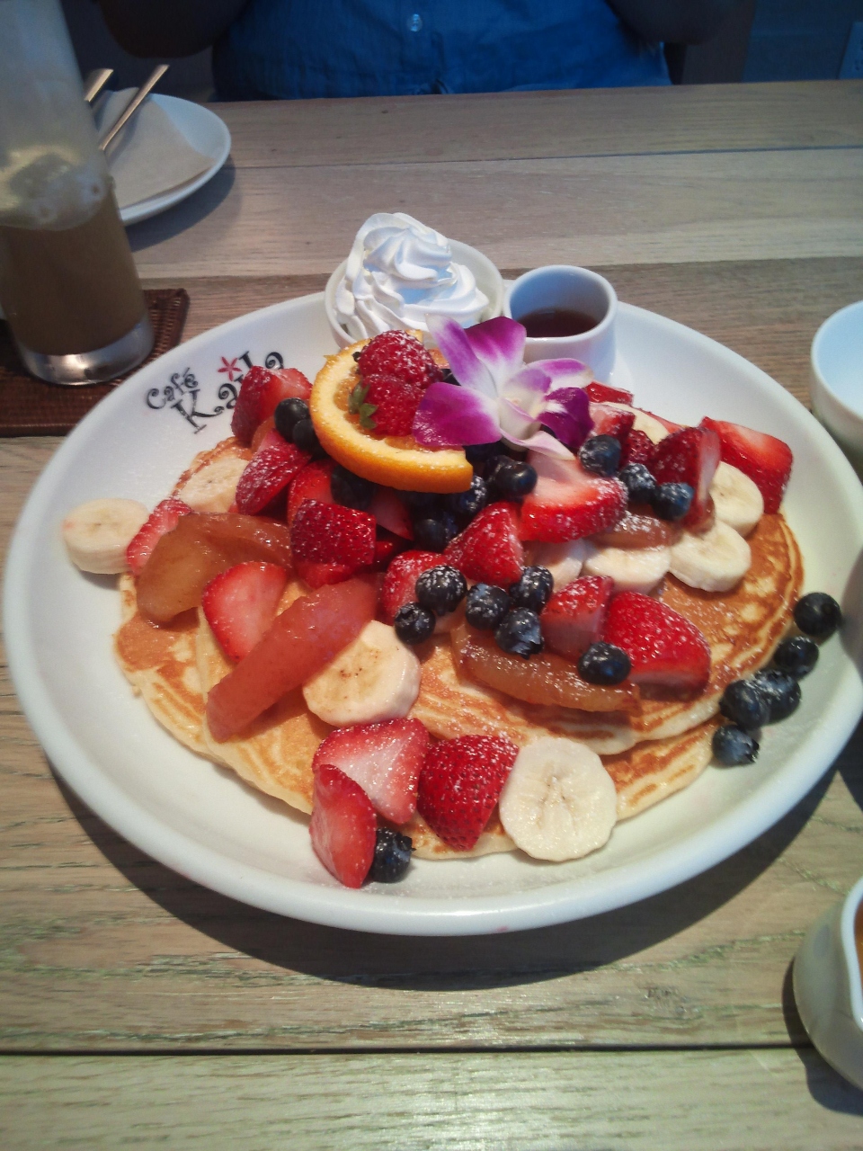 似たようなパンケーキ屋さんは界隈にも沢山ありますが、クリームたっぷり系は苦手なので 、Cafe Kailaが今のところイチオシです。