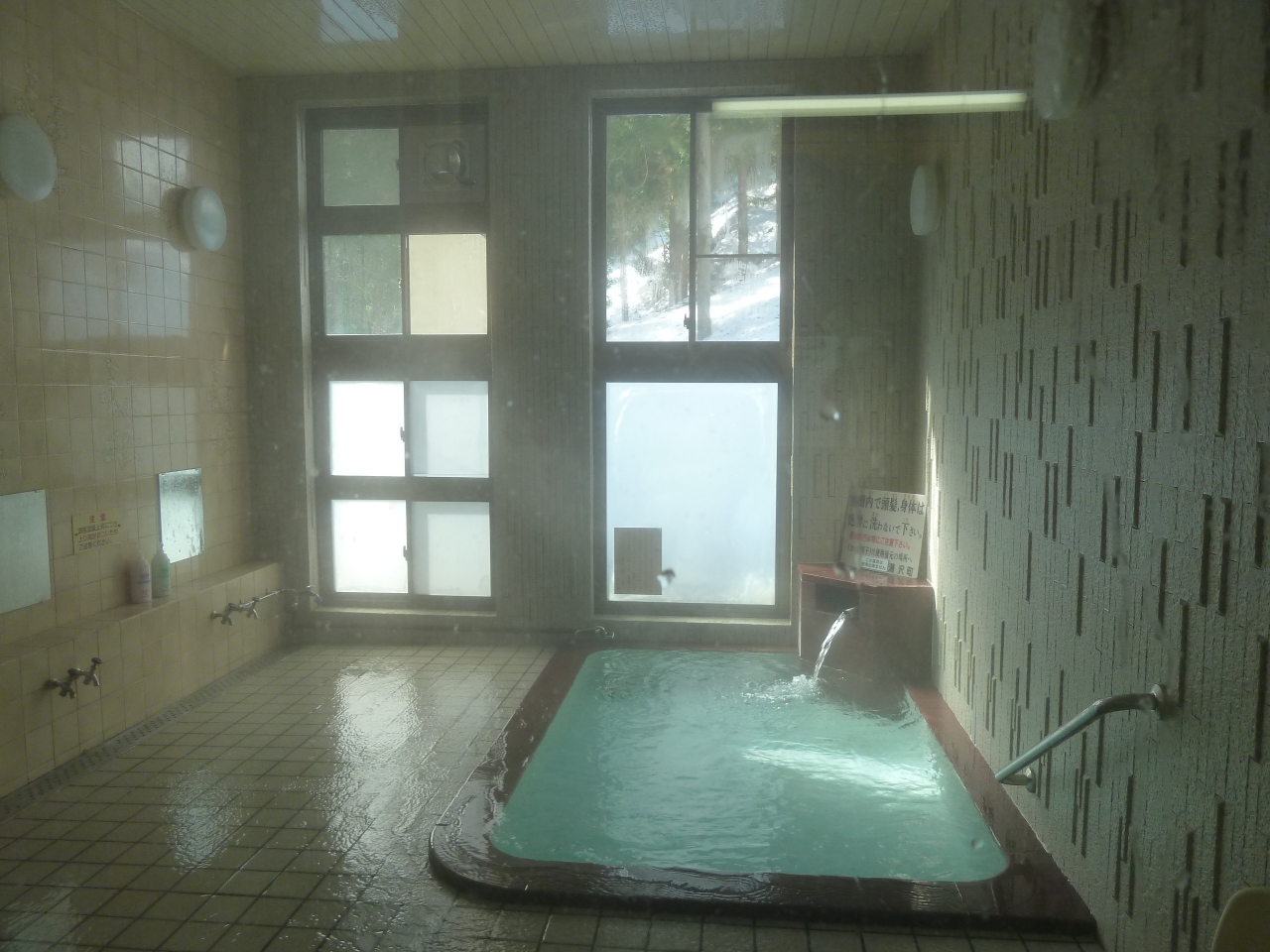 妹親子と言ったのですが、脱衣場でシャワーがないねとか、思ったよりも狭いねとか言っていたら、中から出てきたお客さんに、「シャワーはないけど、ここは湯沢で一番いいお湯なんだよ。源泉掛け流しだから、水なども出さないでね。」と、説明がありました。