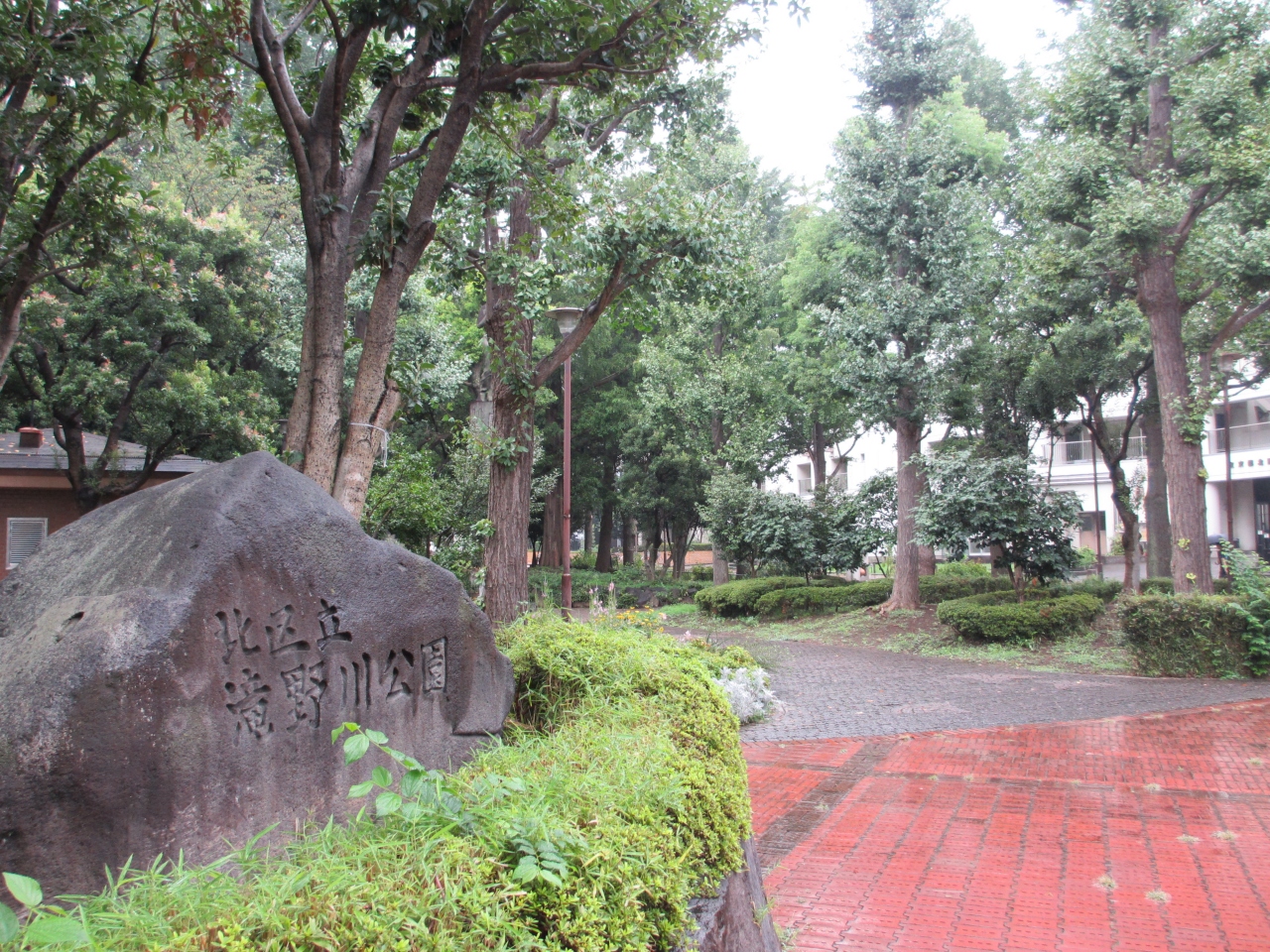 JR上中里駅、東京メトロ西ヶ原駅の近くにある公園です。旧古河庭園から飛鳥山公園まで本郷通り沿いを歩いている際に通りがかりま... 続きを読むした。本郷通りの滝野川消防署・隣接している地震の科学館の隣にあります。奥の方に行くと滝や水路等の水遊び場や遊具等もあり、お子さんも遊べる施設があり、ジョギングコースや体育館・テニスコート等もあるのでスポーツもできます。消防署の隣にあるということもあり、応急給水槽や備蓄倉庫等もあり地域の防災拠点ともなっているようです。また、公園の入口付近には御殿前遺跡の説明板と発掘された土器が展示されていました。この周辺は先土器時代から近世にかけての複合遺跡となっています。公園の奥には農事試験場跡地の碑もあります。 閉じる