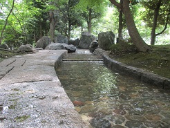 花や実のなる木、豊富な緑、大きな滝のある池や川が、潤いの景観を与えてくれます。
