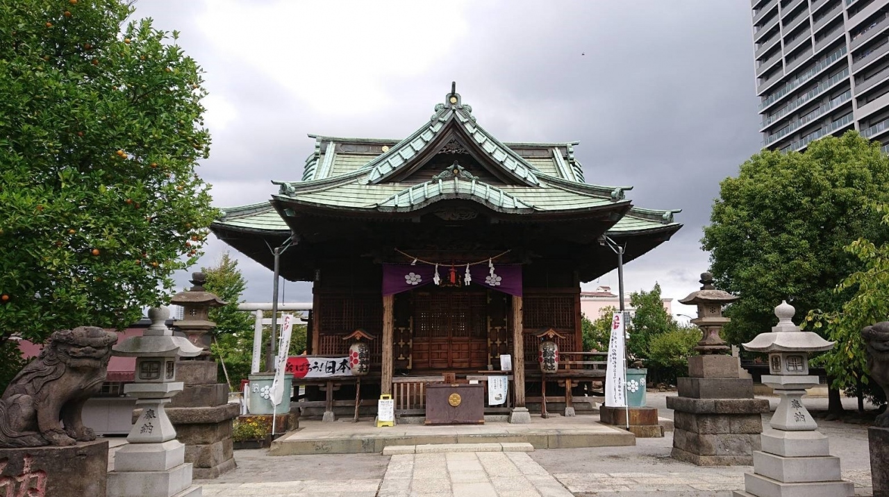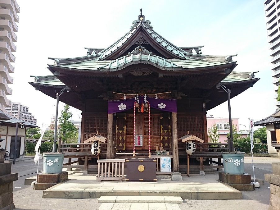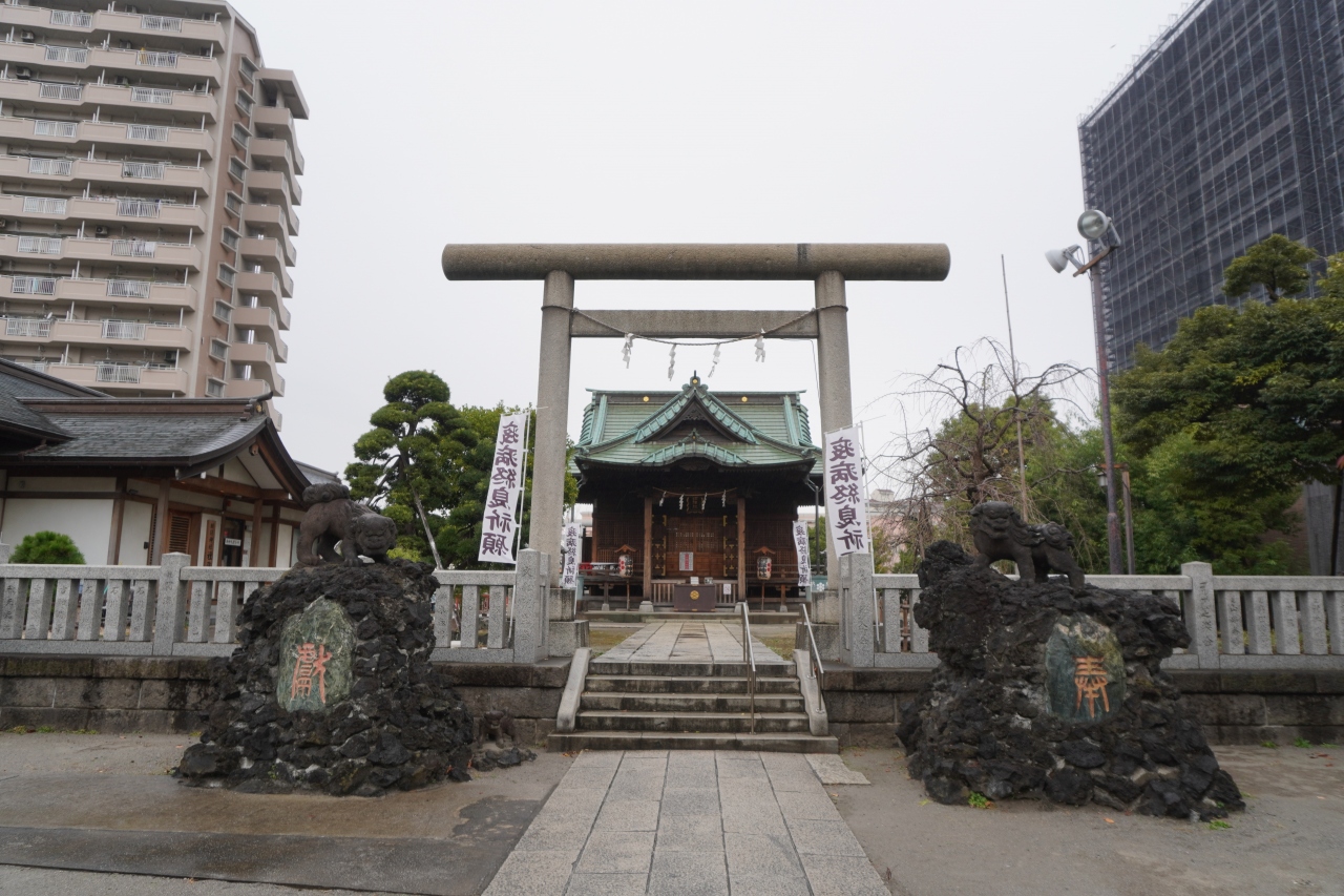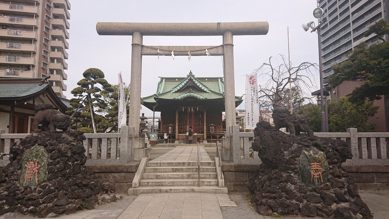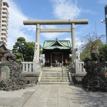 隅田川沿いの大きなマンションの中にひっそりとある神社