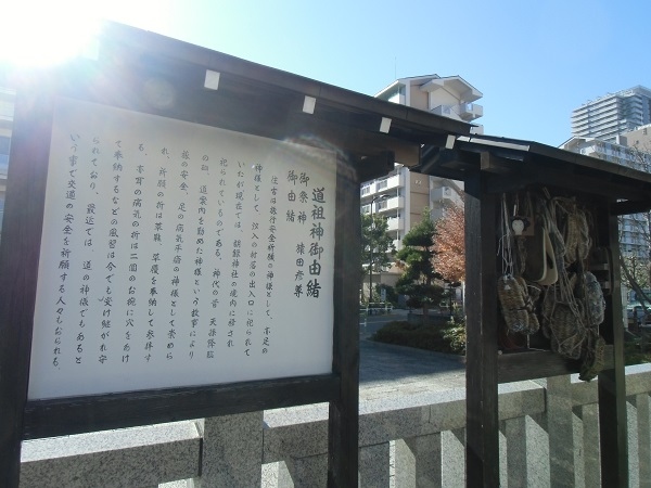 南千住駅から北東へ13分ほど歩いたところにあります。東京リバーサイド病院の向かいです。1561年に創建され、面足尊と惶根尊... 続きを読むを祀っています。石造りの鳥居を入って左に猿田彦を祀る小さな社殿が刀塚の隣にあります。境内に桜が数本と枝垂れ桜がありました。狛犬が二対あり、木造銅板拭屋根の社殿前に天保の年号が彫られた一対が、社殿が建っている境内へ行く階段前に溶岩の土台の上に一対があります。この溶岩の土台の下に獅子の仔がいたのが印象的でした。猿田彦に航路の安全を祈願する多くの草鞋と耳の病気の平癒を祈願する穴のあいた椀が供えられていました。災害に備えて平成に開発された地域ですが、信仰する人が多いことがわかりました。 閉じる