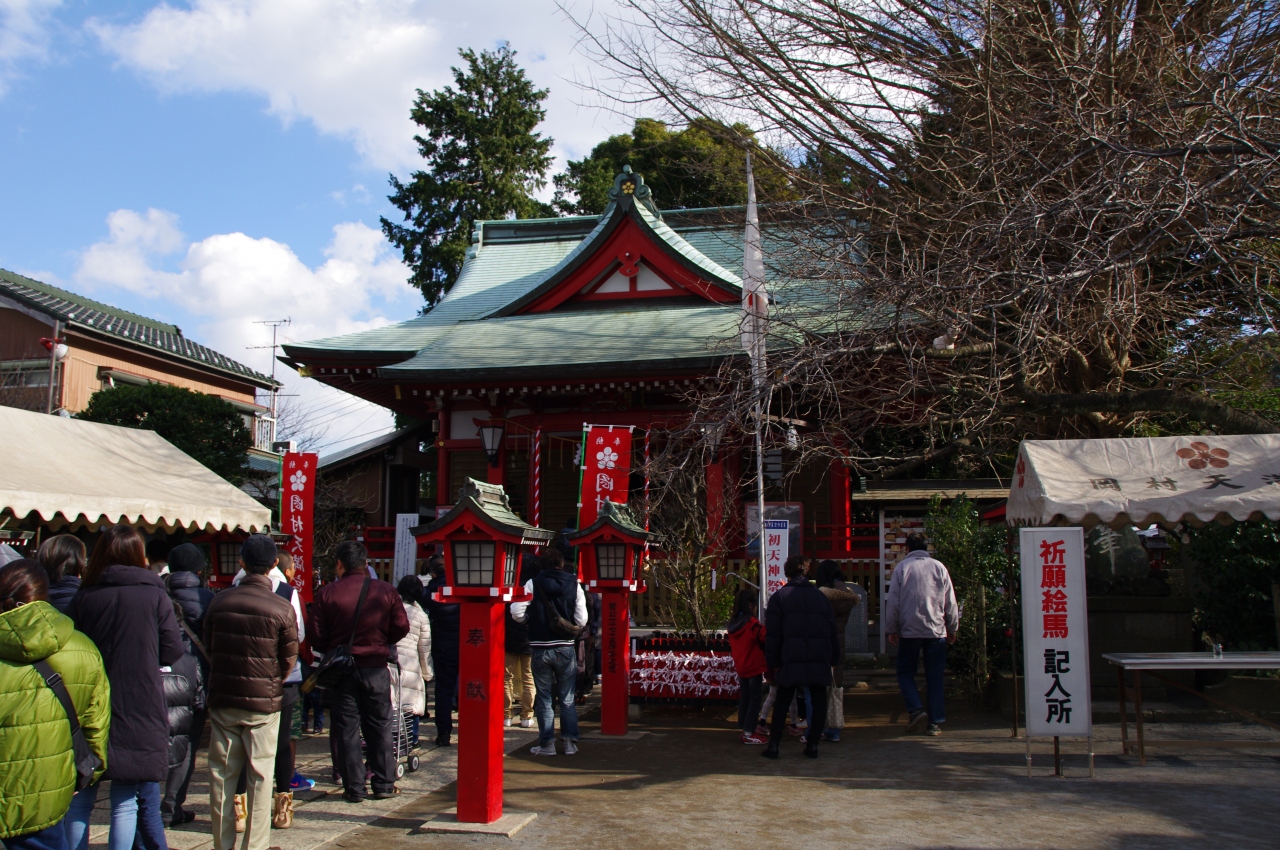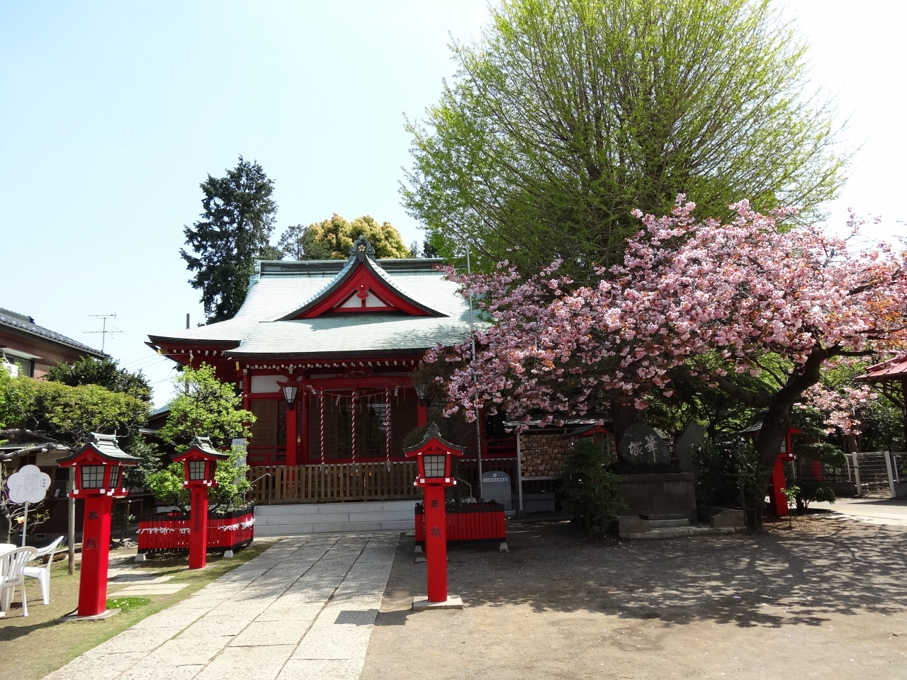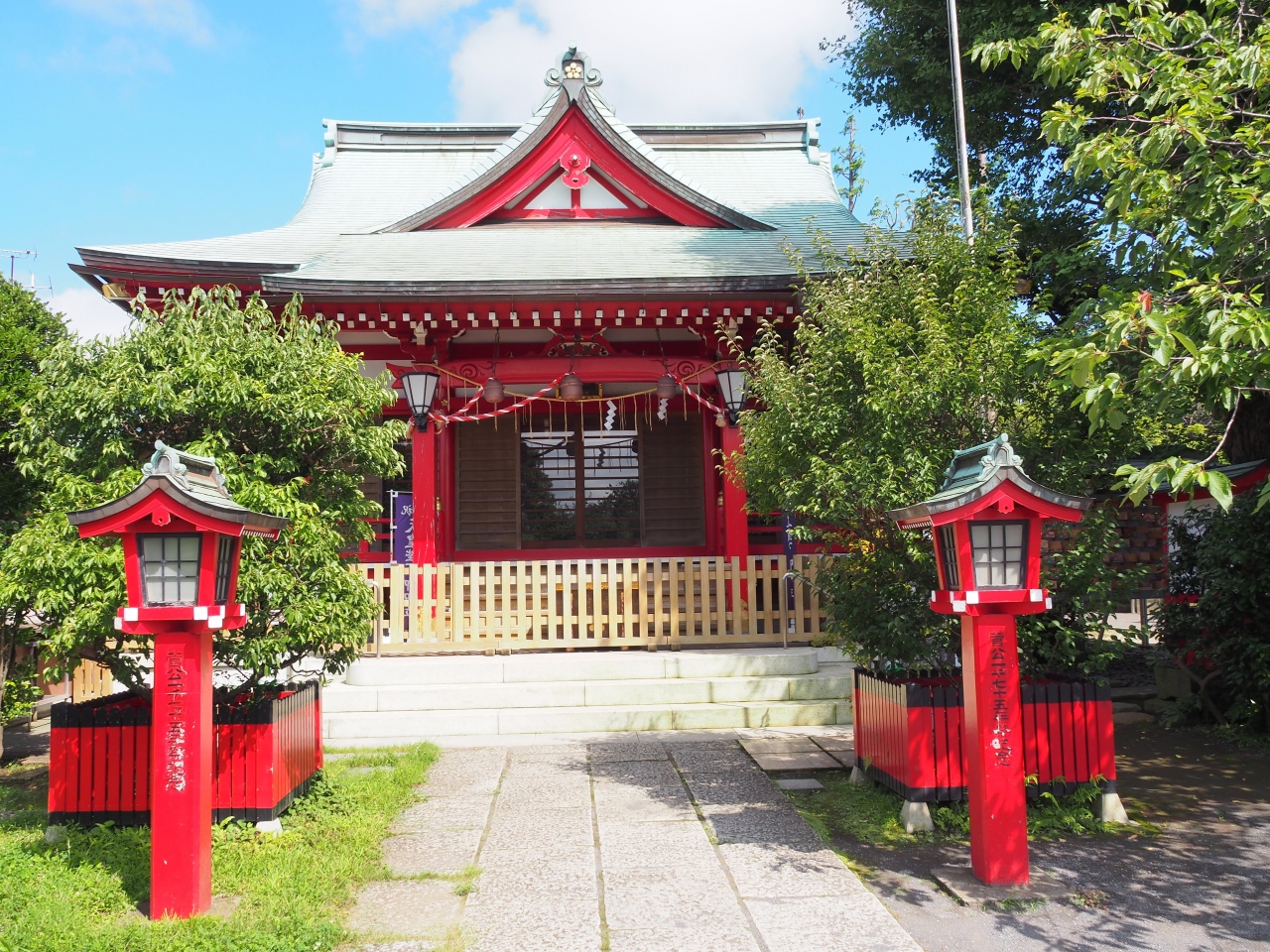 朱色が鮮やかな綺麗な神社です。良い感じの舞台が有り、太鼓が置かれていました。