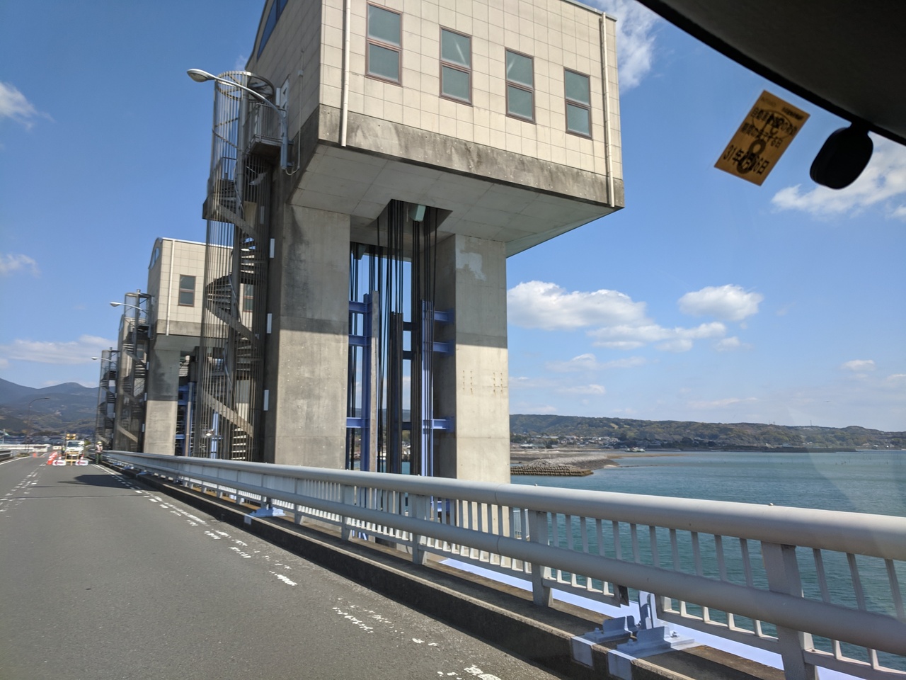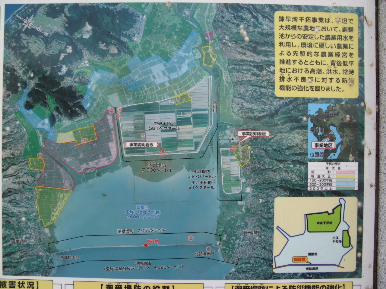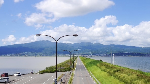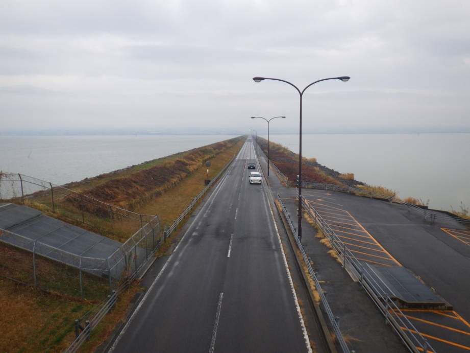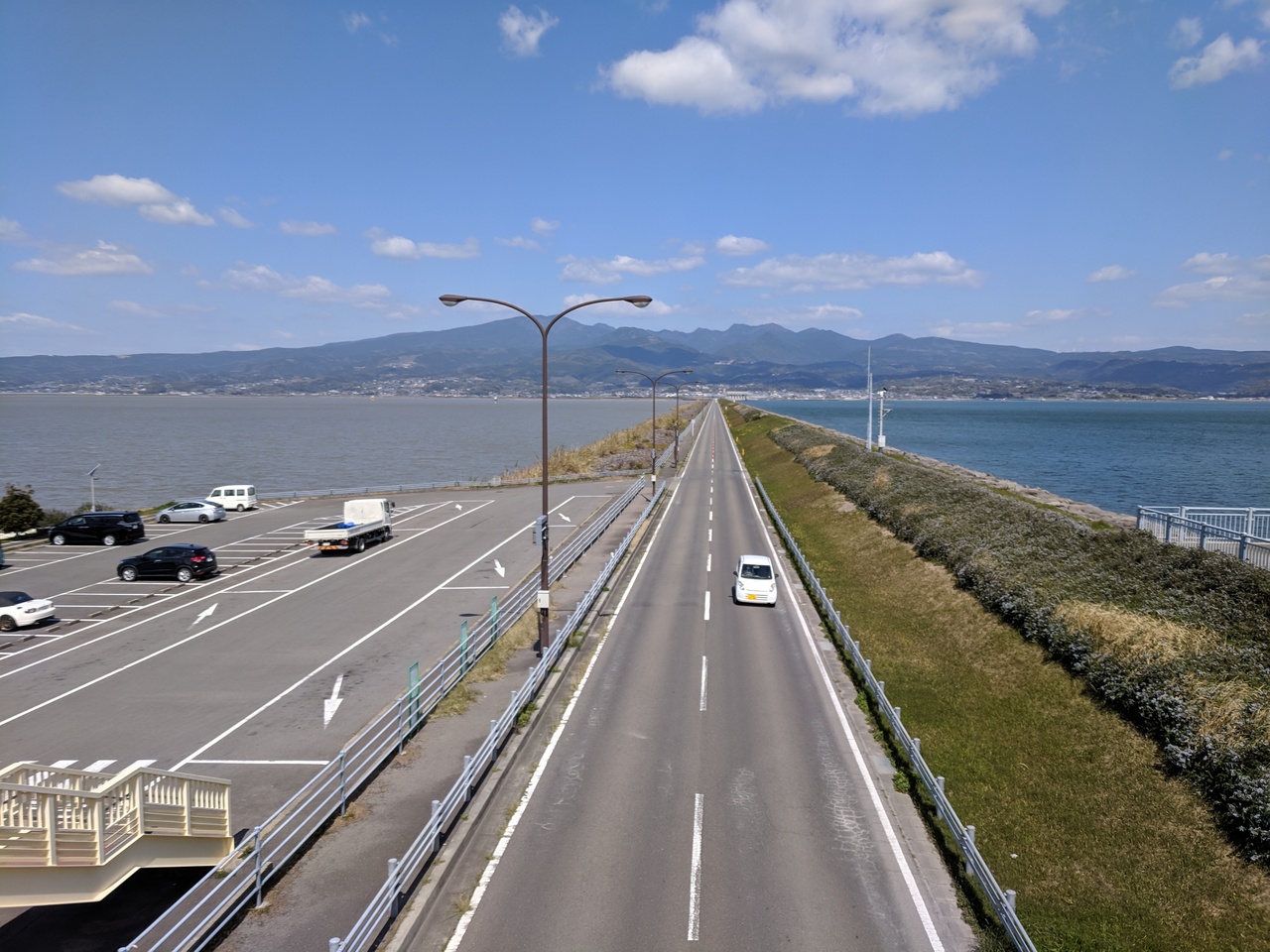 九州一周旅行のときに、島原から長崎に行く途中「雲仙多良シーライン」を通りました。場所は、島原半島の吾妻町から高来町を結ぶ道... 続きを読む路です。ここは、諫早湾の堤防閉め切りで構築した、潮受堤防の上に建設した全長約8kmの堤防道路で平成19年12月に開通しました。一般には“諫早湾干拓堤防道路”と呼ばれているようです。