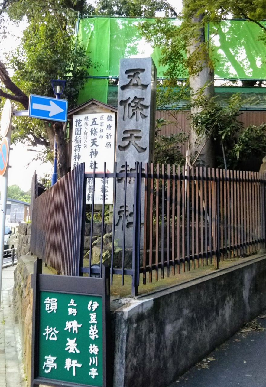 上野恩賜公園を散策しているとき 「韻松亭」の近くに「五條天神社」がありました。