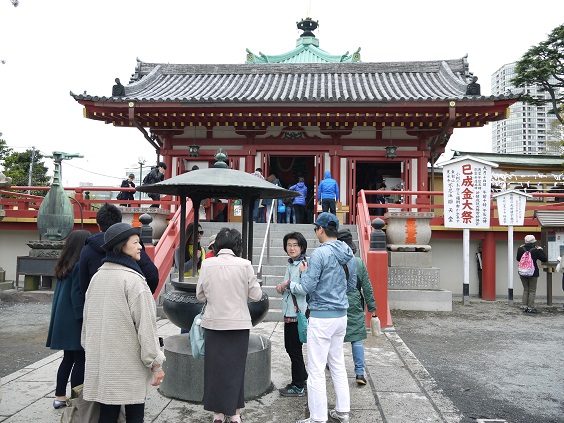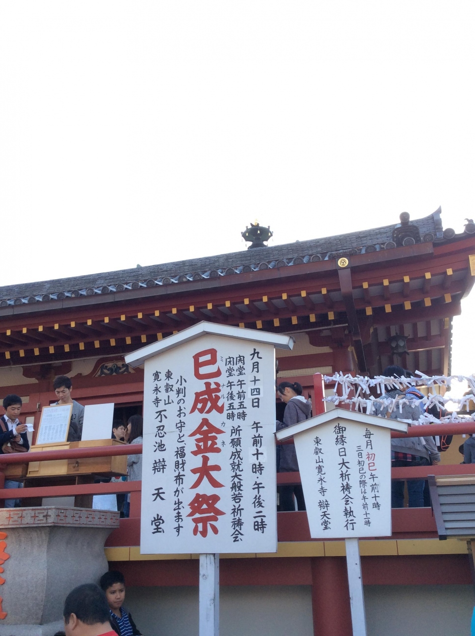 いつ建立されたか、はっきりしないが、寛永寺が創建されて間もない頃だといわれる。天海僧正が寛永寺を創建したときに、水谷伊勢守勝隆とはかり、比叡山の近江の竹生島になぞらえて、不忍池の中に中島を築いて、弁財天をまつったのが、このお堂だと伝えられている。弁天堂の本尊は、八臂大弁財天。長寿、福得の神として広く信仰を集め、音曲の神としても有名である。
