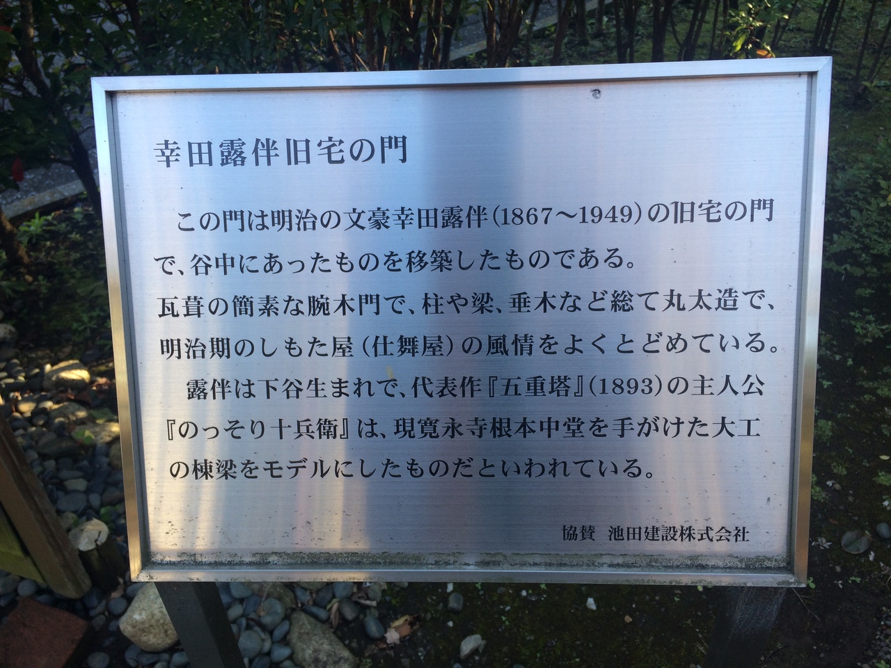 本堂は平成元年の火災で焼失してしまい、平成5年に再建されたものなのでまだ新しいです。境内の見所としては、寛永寺旧本坊表門(重要文化財)があります。全体に黒い門はどっしりとした風格があり、かつての寛永寺の勢力を想像させるものでした。そのほか、東の輪王殿との間に幸田露伴旧宅の門が移築されてます。 閉じる投稿日:2017/07/23