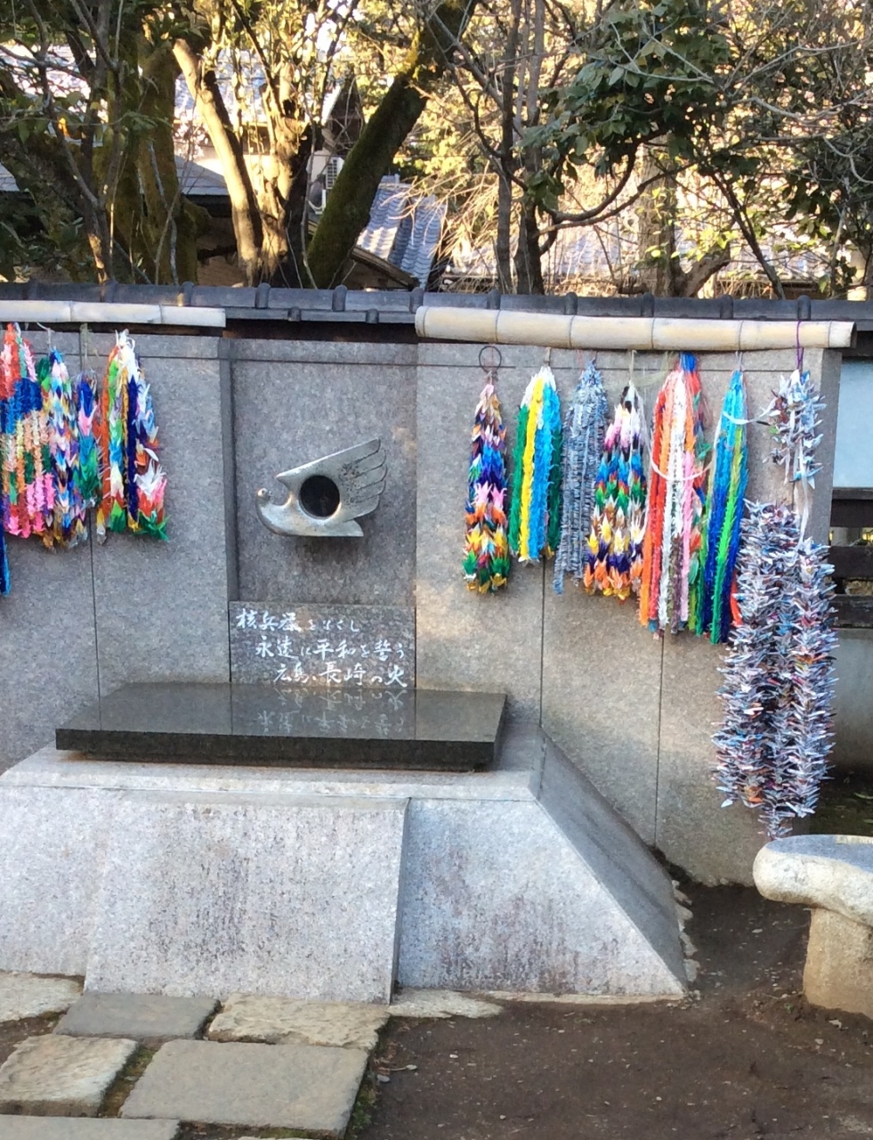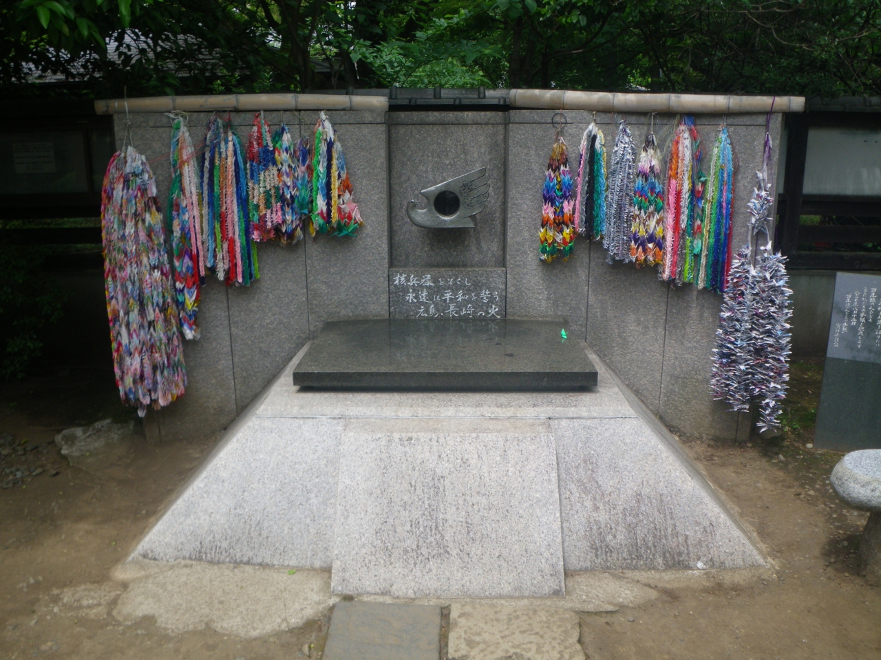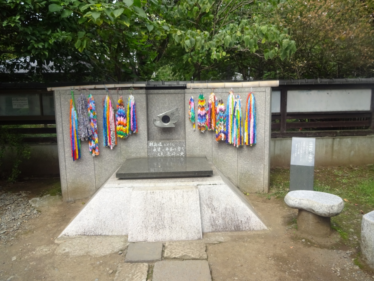 故郷の福岡県星野村(今は八女市)で保存していたのを長崎の被爆瓦から得た火と合わせ、「平和を願う火」「核廃絶を訴える火」とし、その後様々な人たちの協力の下、今の様な形に至っている由。