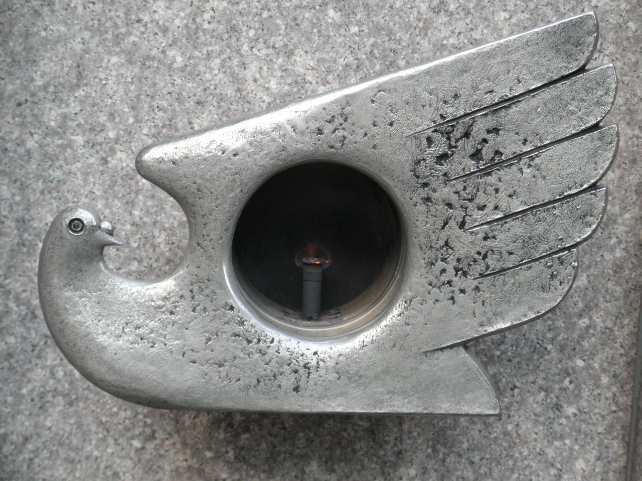 ハトの燭台に火が
