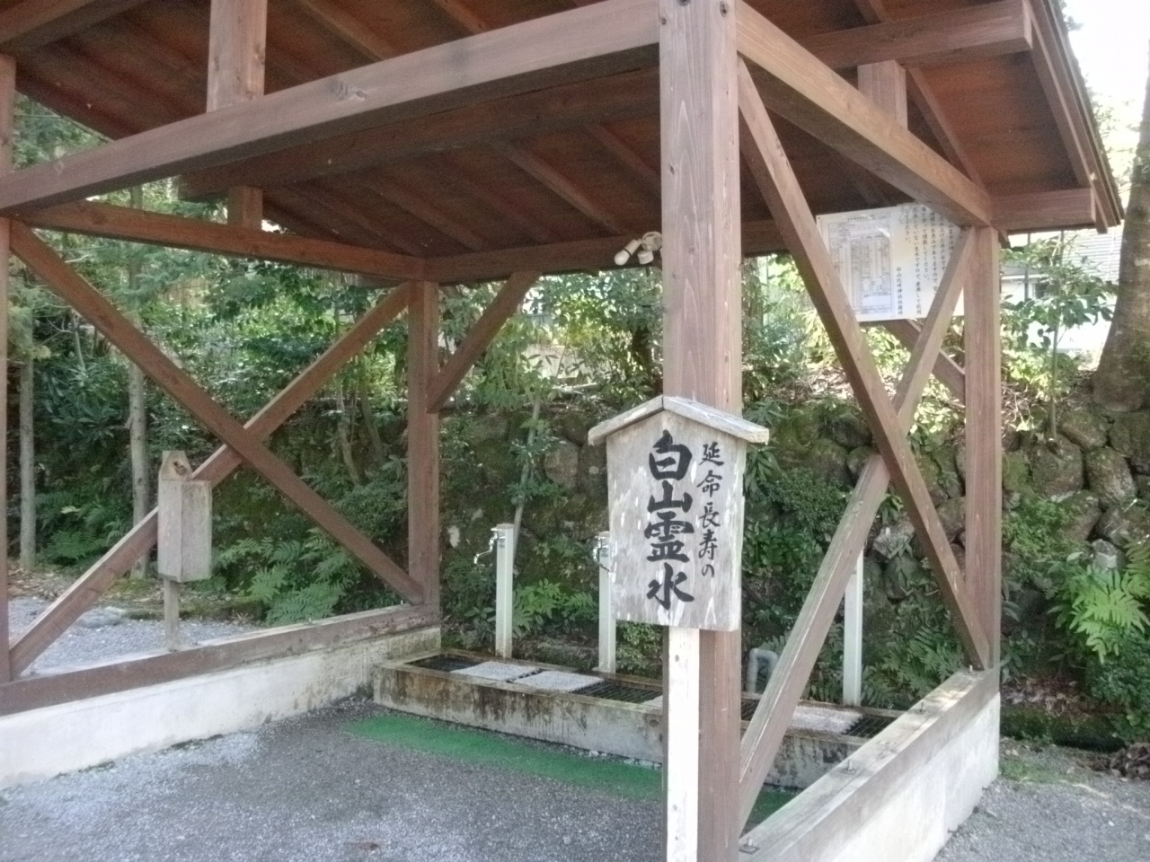 社殿横の白山霊水は、わざわざ車を横付けして組んでいく人もいるほど。国宝・重要文化財が目白押しの宝物館は、冬季の間(12~3月)閉館しています。