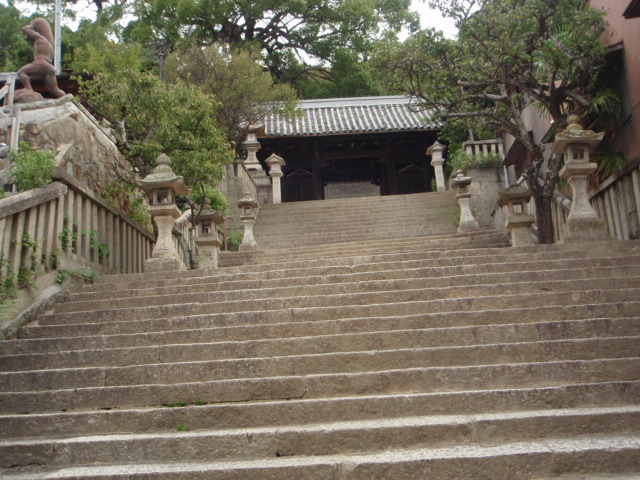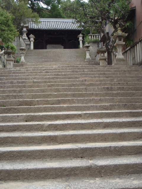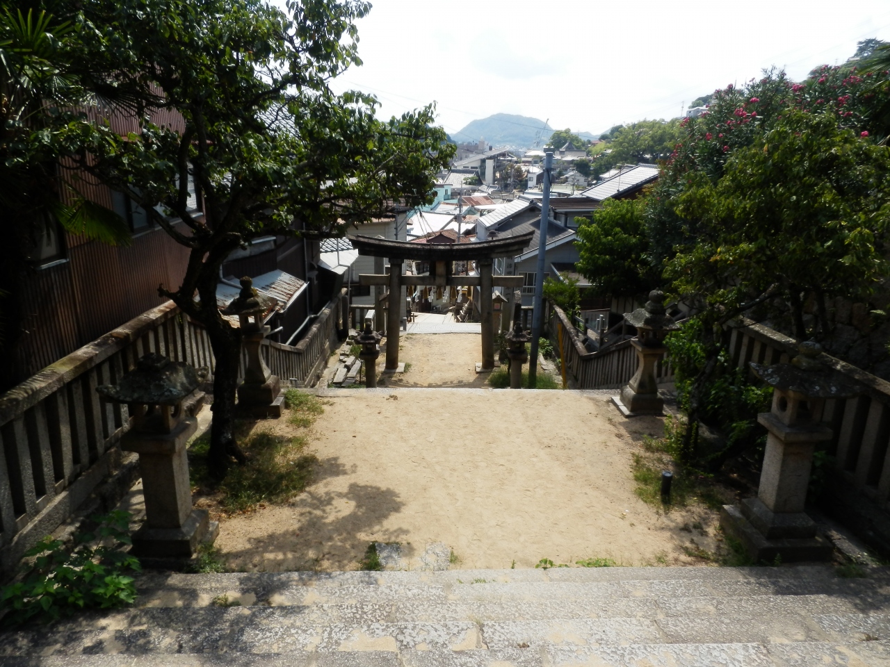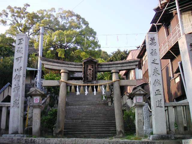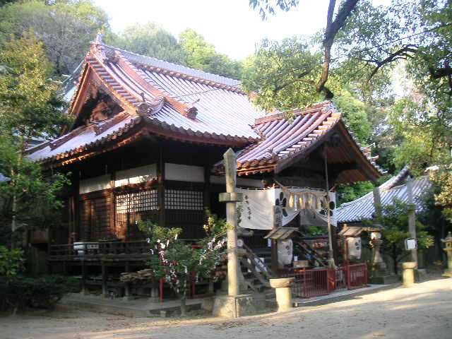 菅原道真が太宰府へ左遷される途次に、里人に下賜した衣の片袖が御神体で、見事な55段の石段は映画の舞台になった。近くに菅公腰掛岩もある。