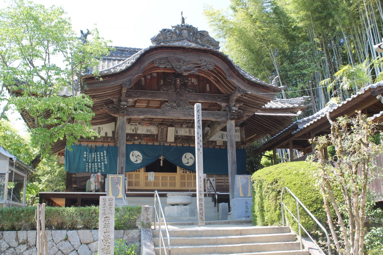 四国霊場第57番札所。瀬戸内海での海難事故を嘆いた弘法大師が平穏を祈願したところ、海上に阿弥陀如来が出現し、この像を本尊として寺を建てたといわれています。入口で迎える「お願い地蔵」が人気です。