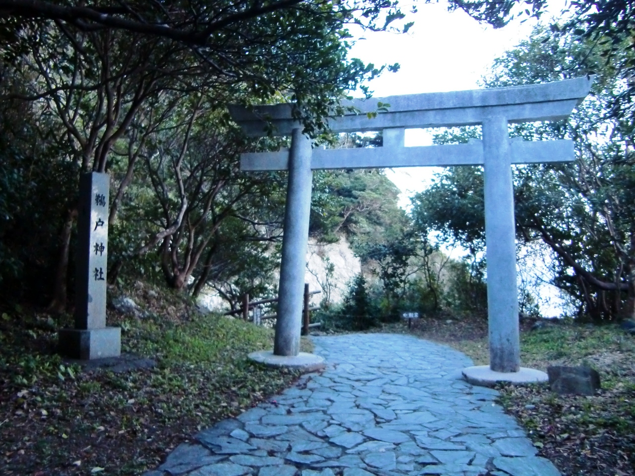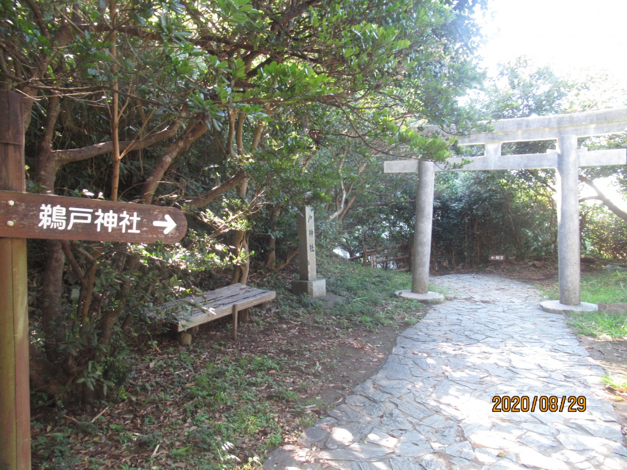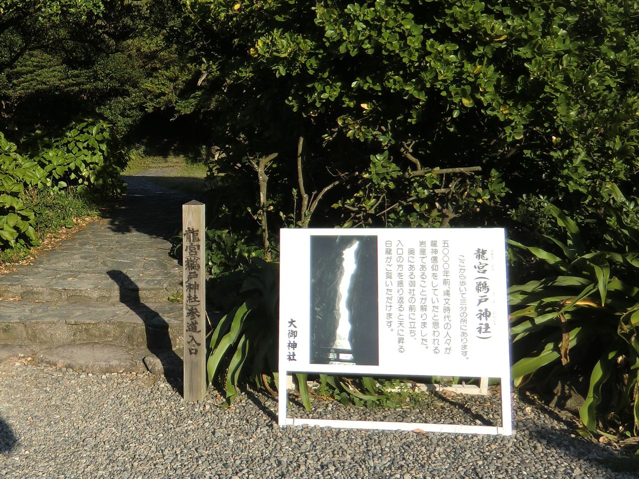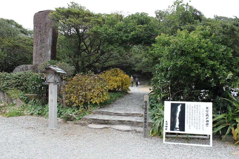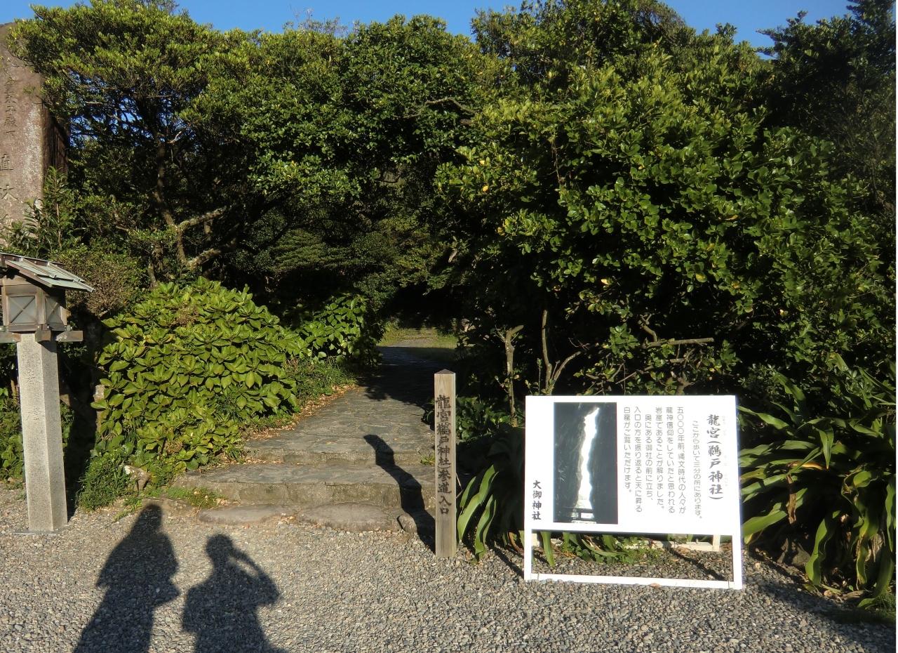 海に向かって右に行くと大御神社の鳥居、左に行くとこの鵜戸神社への細道があります。
