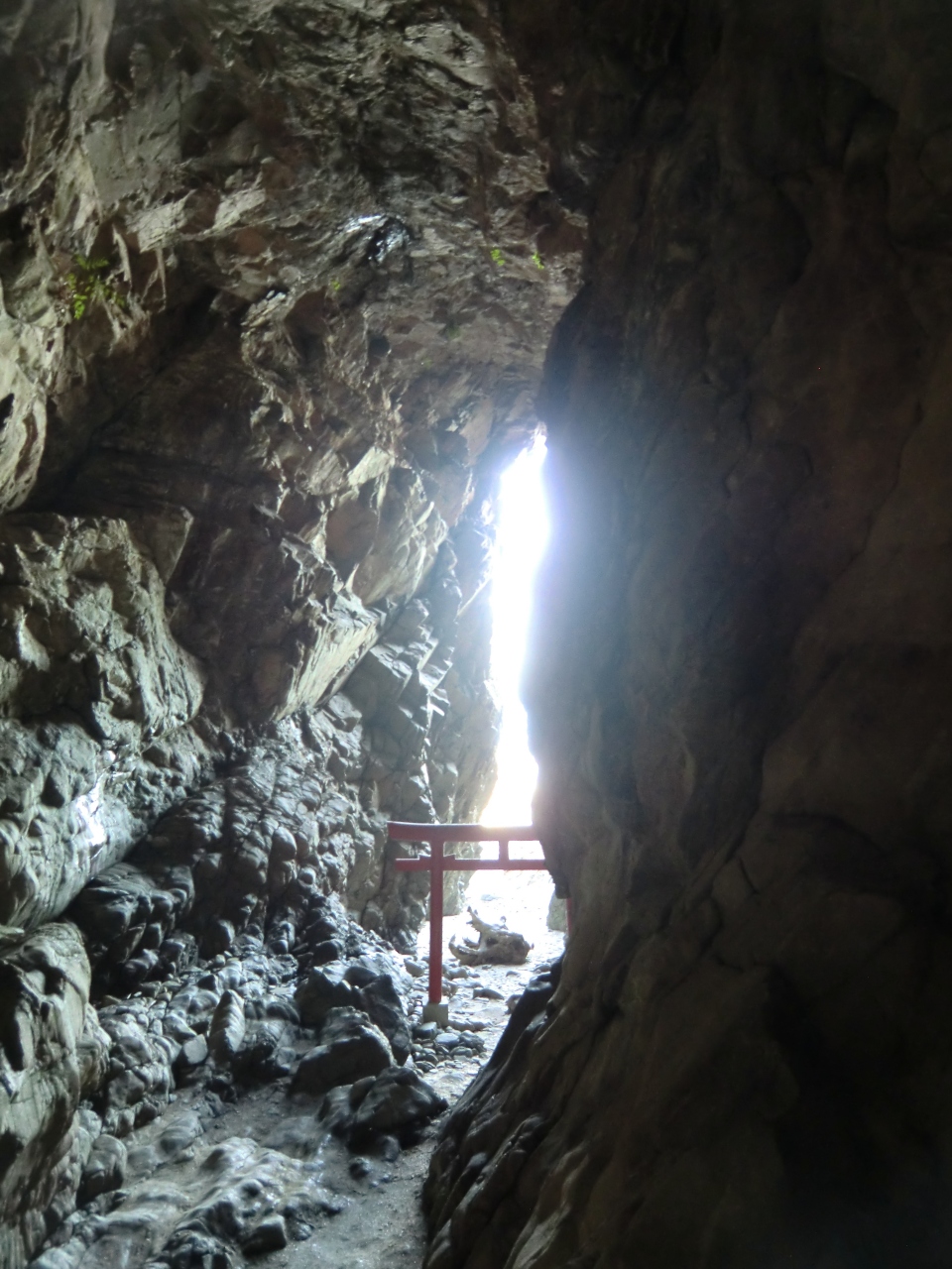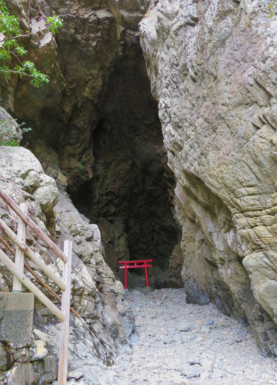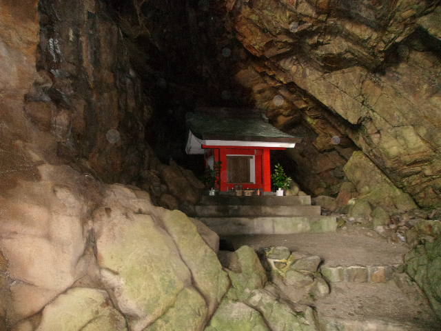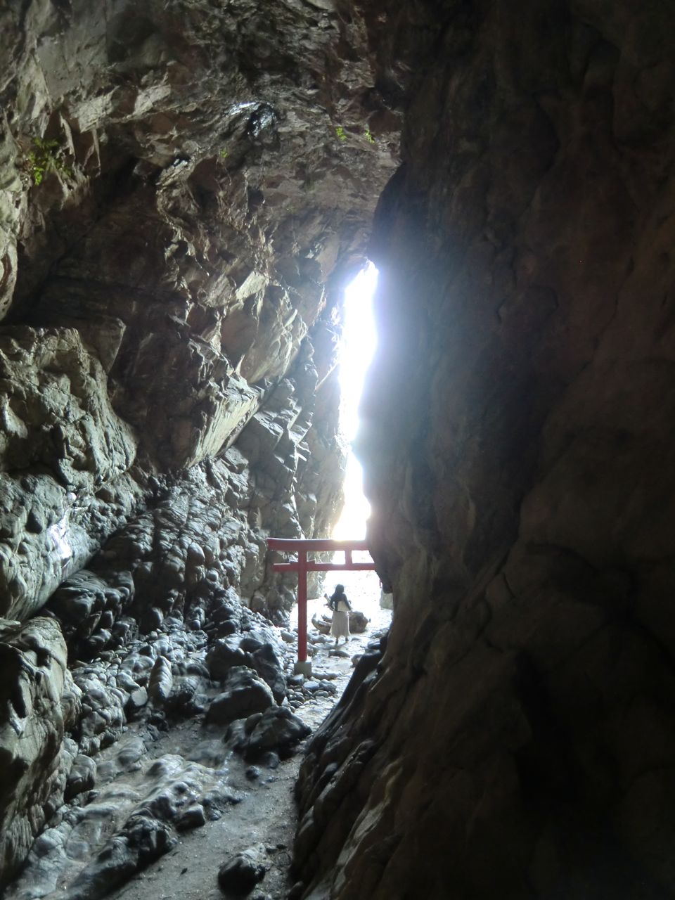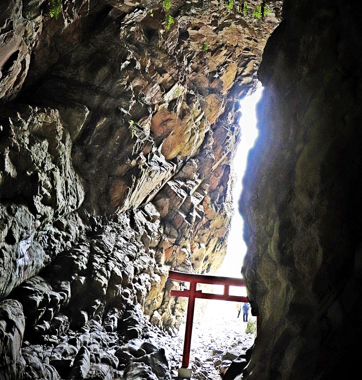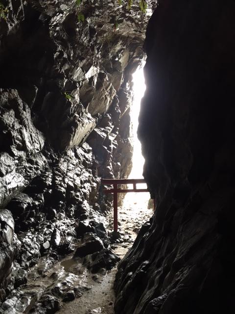 洞窟の中にお社がある点では日南の鵜戸神宮と同じですが洞窟は幅が狭く高さがものすごく高いです。