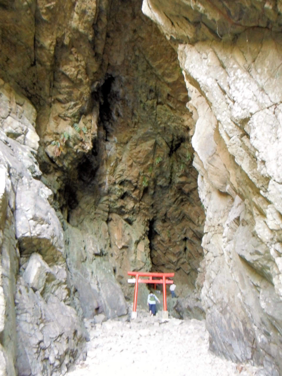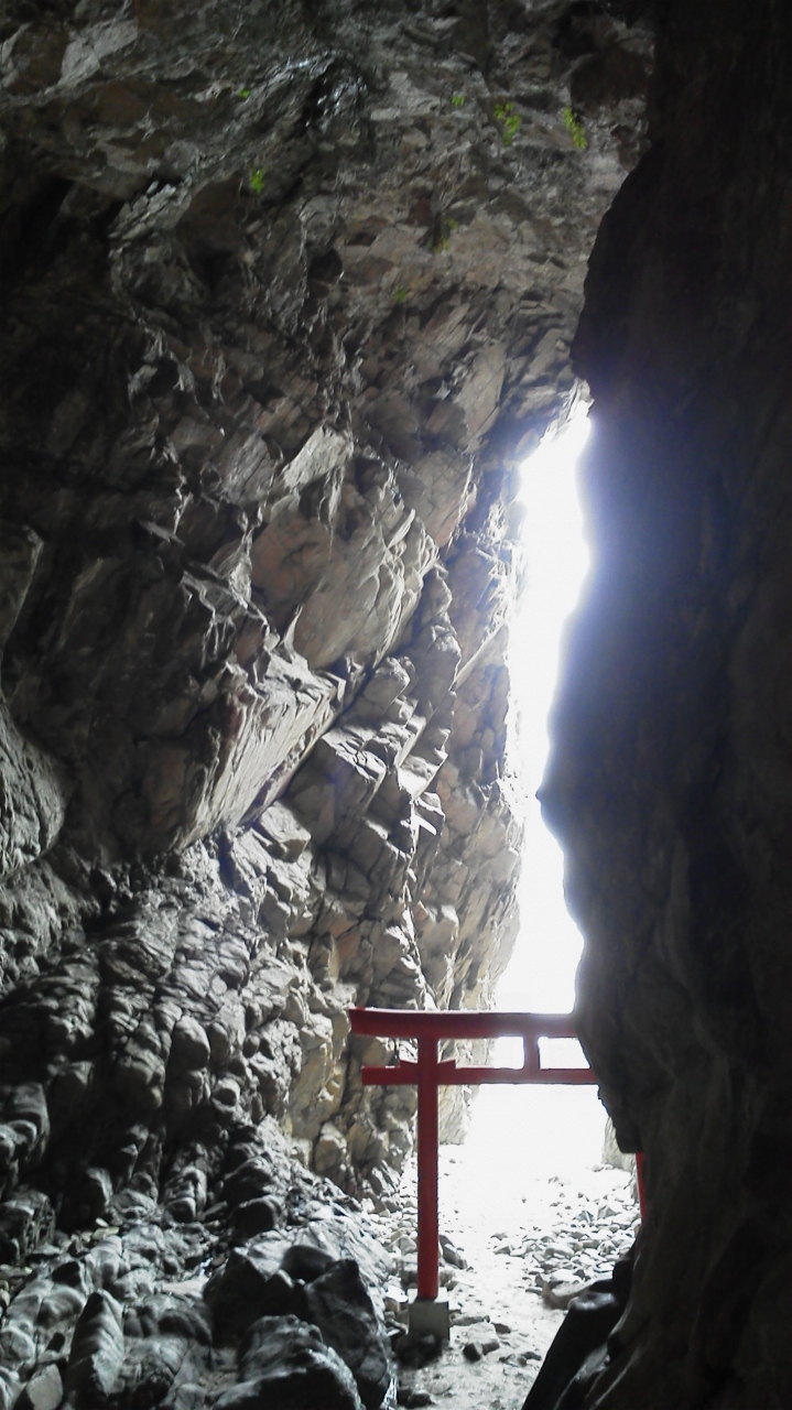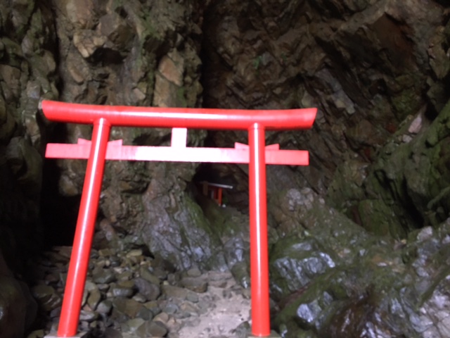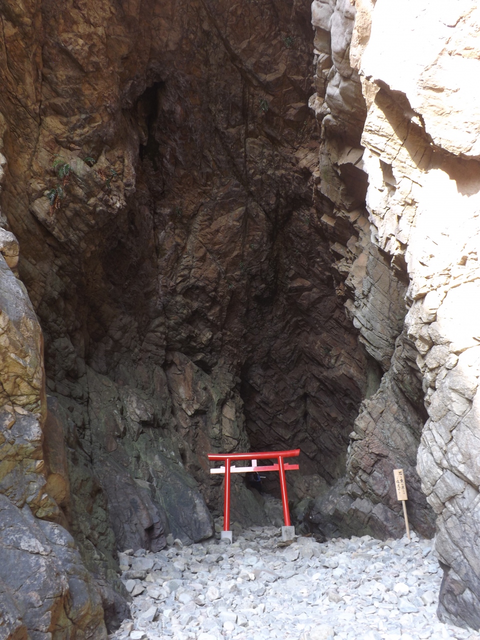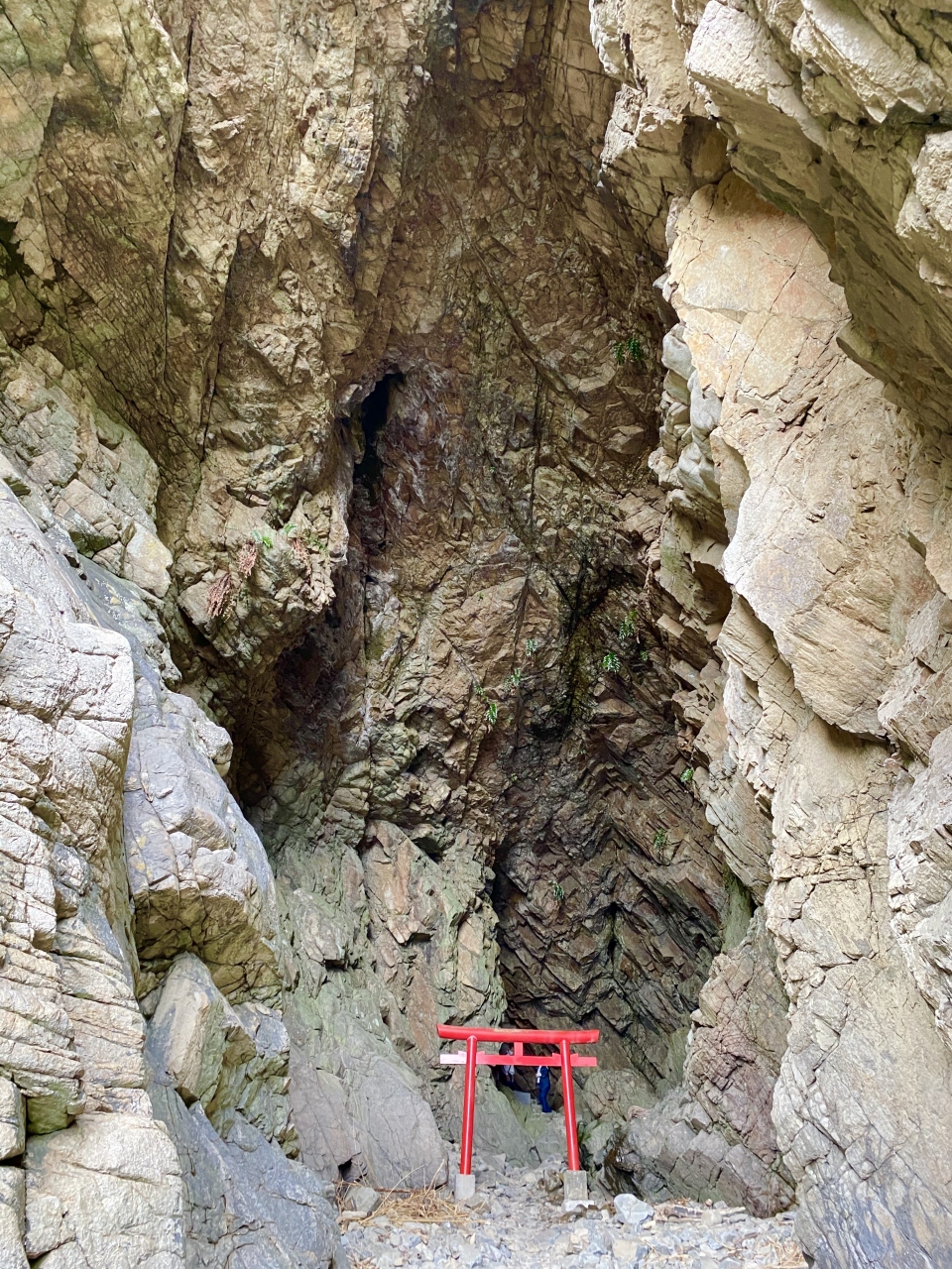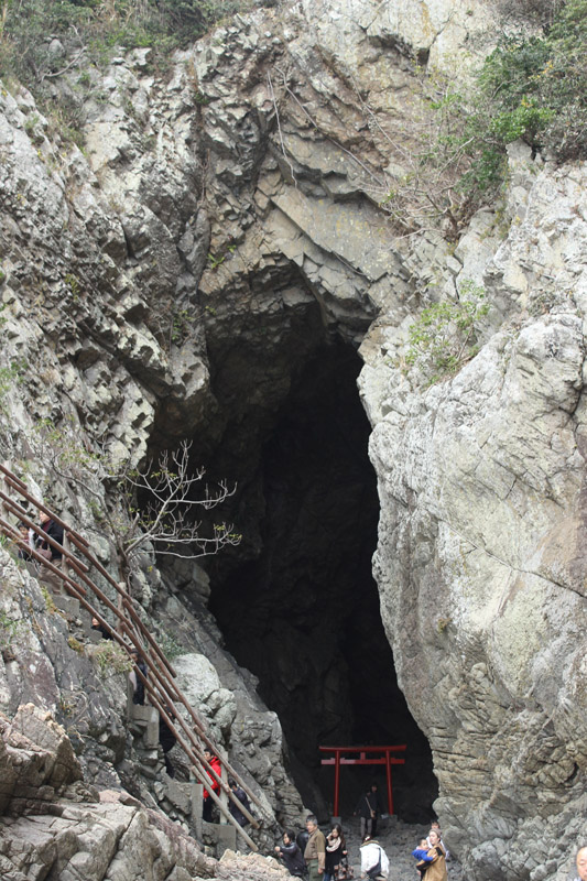 洞窟の中にお社がある点では日南の鵜戸神宮と同じですが洞窟は幅が狭く高さがものすごく高いです。
