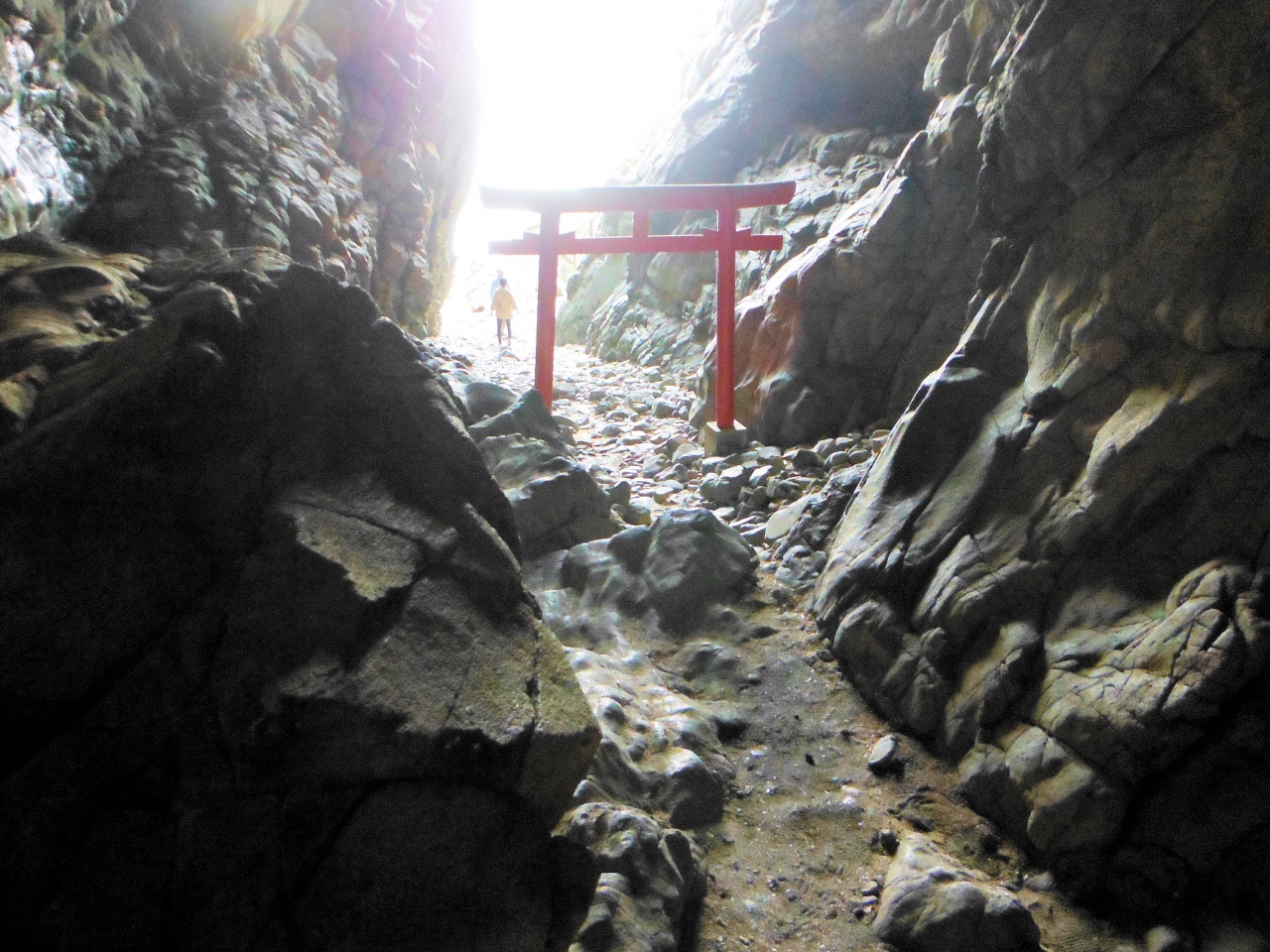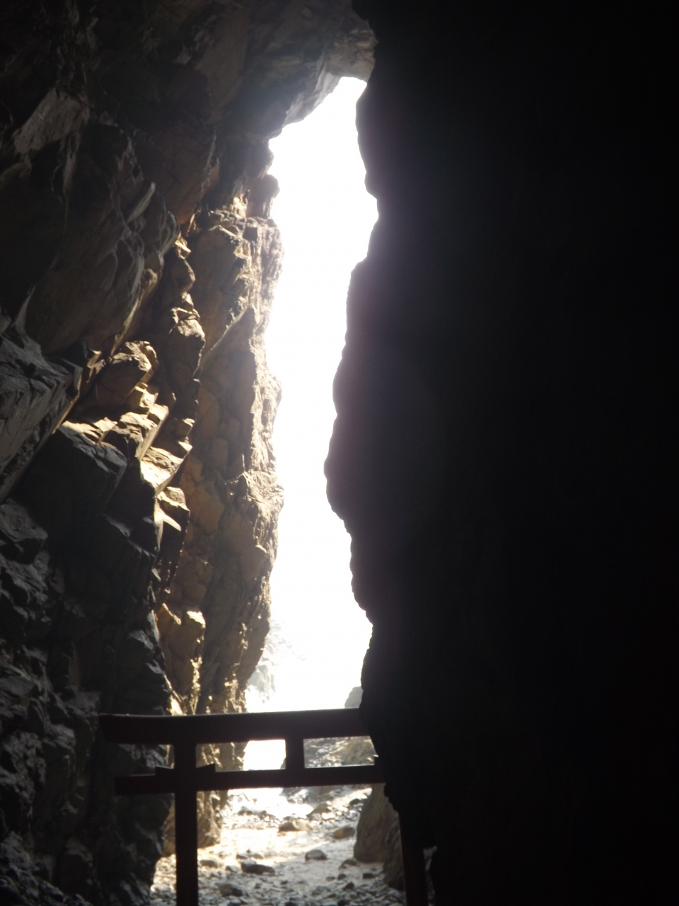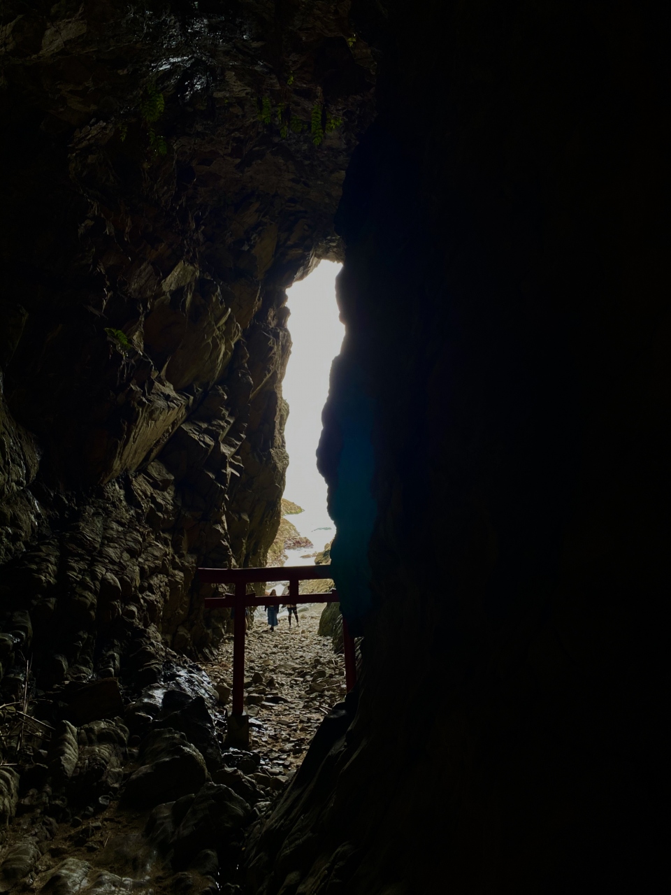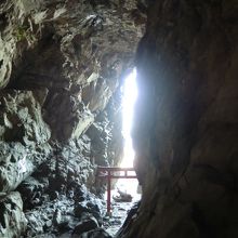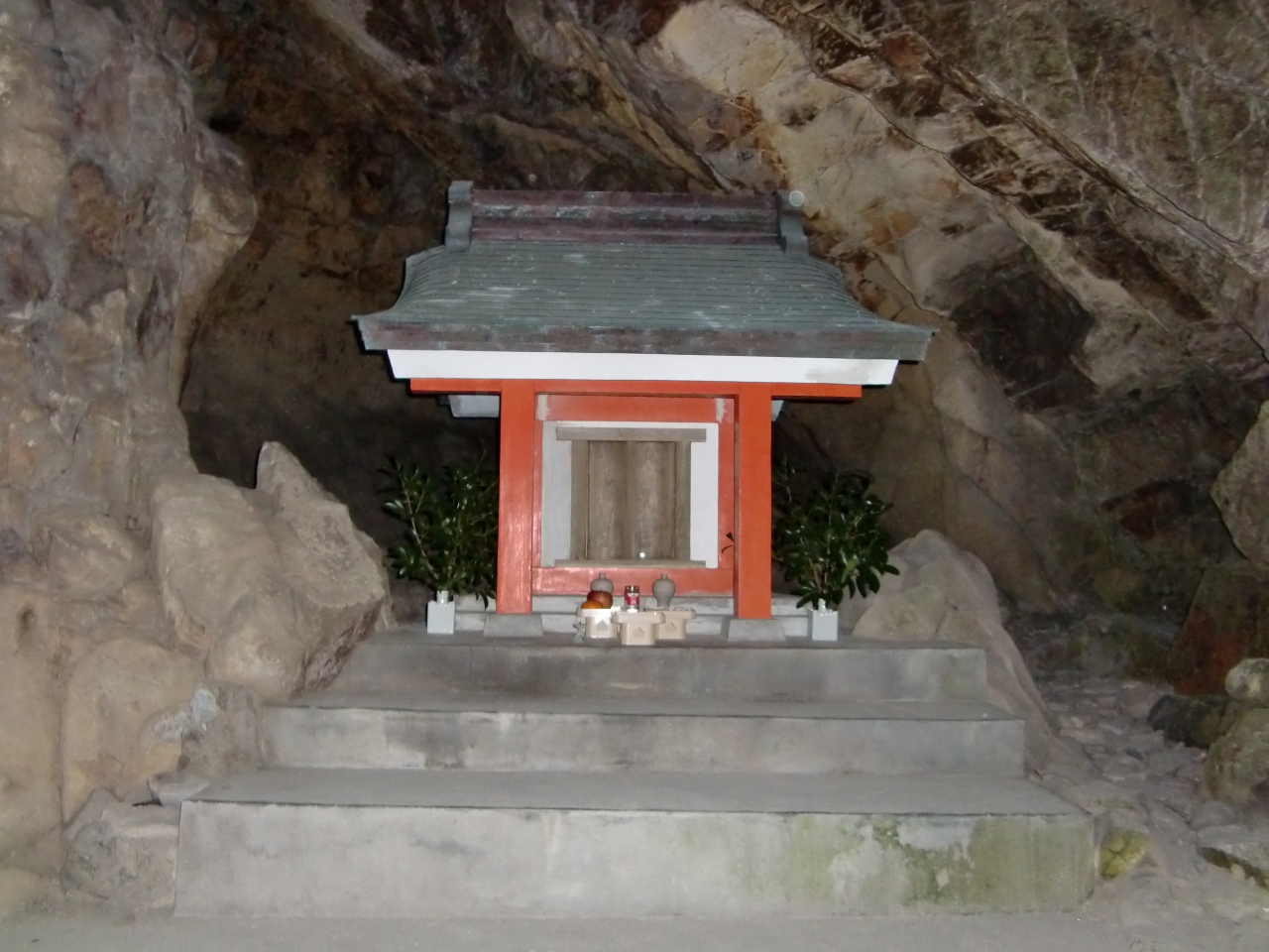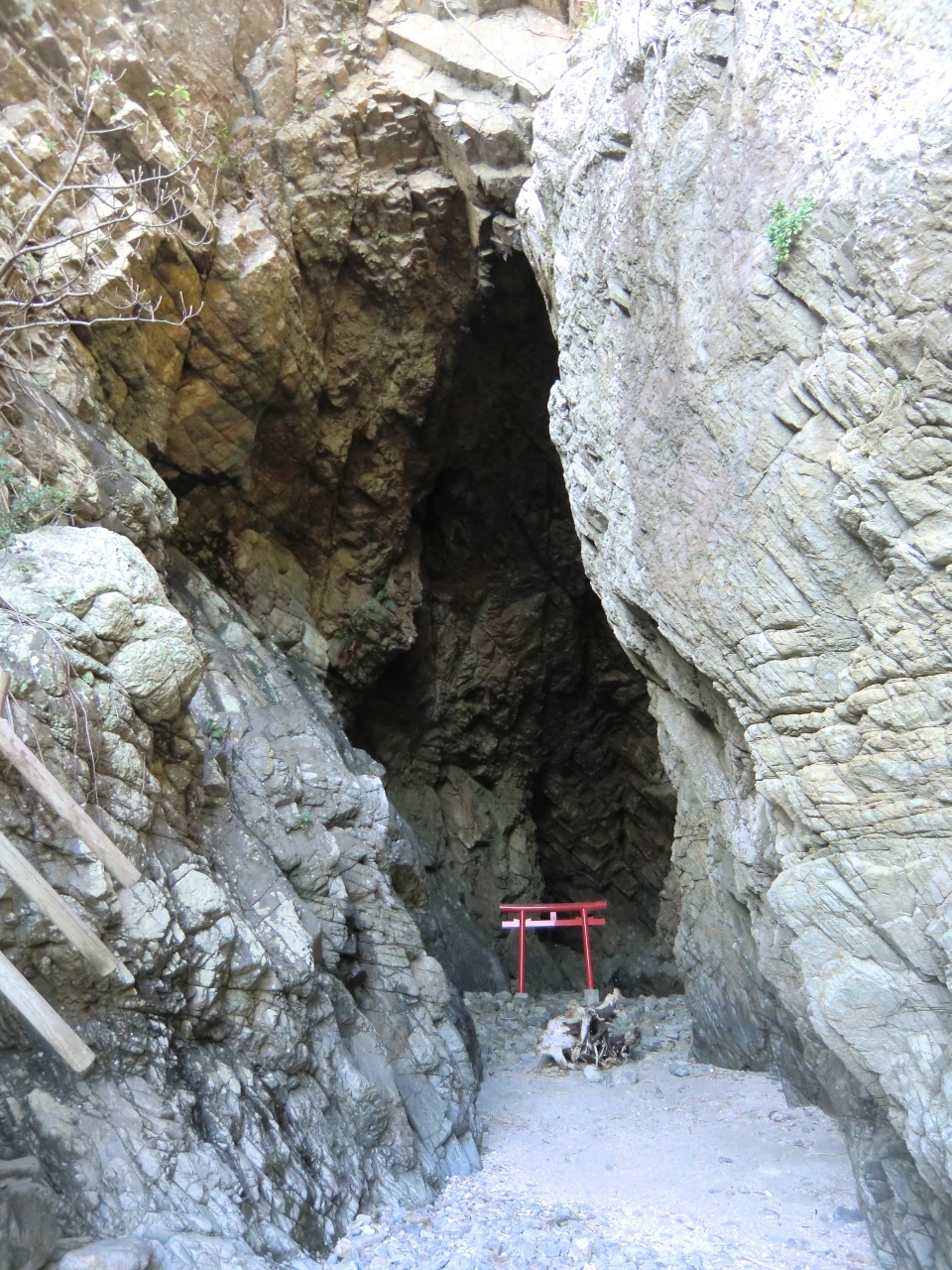 洞窟の中にお社がある点では日南の鵜戸神宮と同じですが洞窟は幅が狭く高さがものすごく高いです。