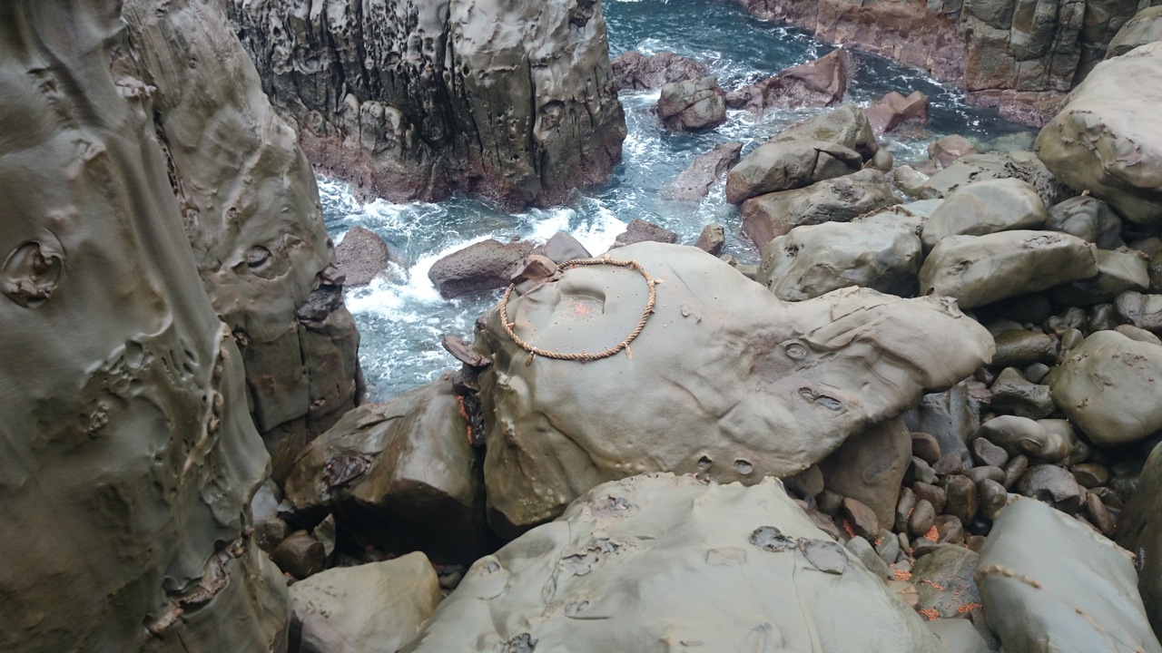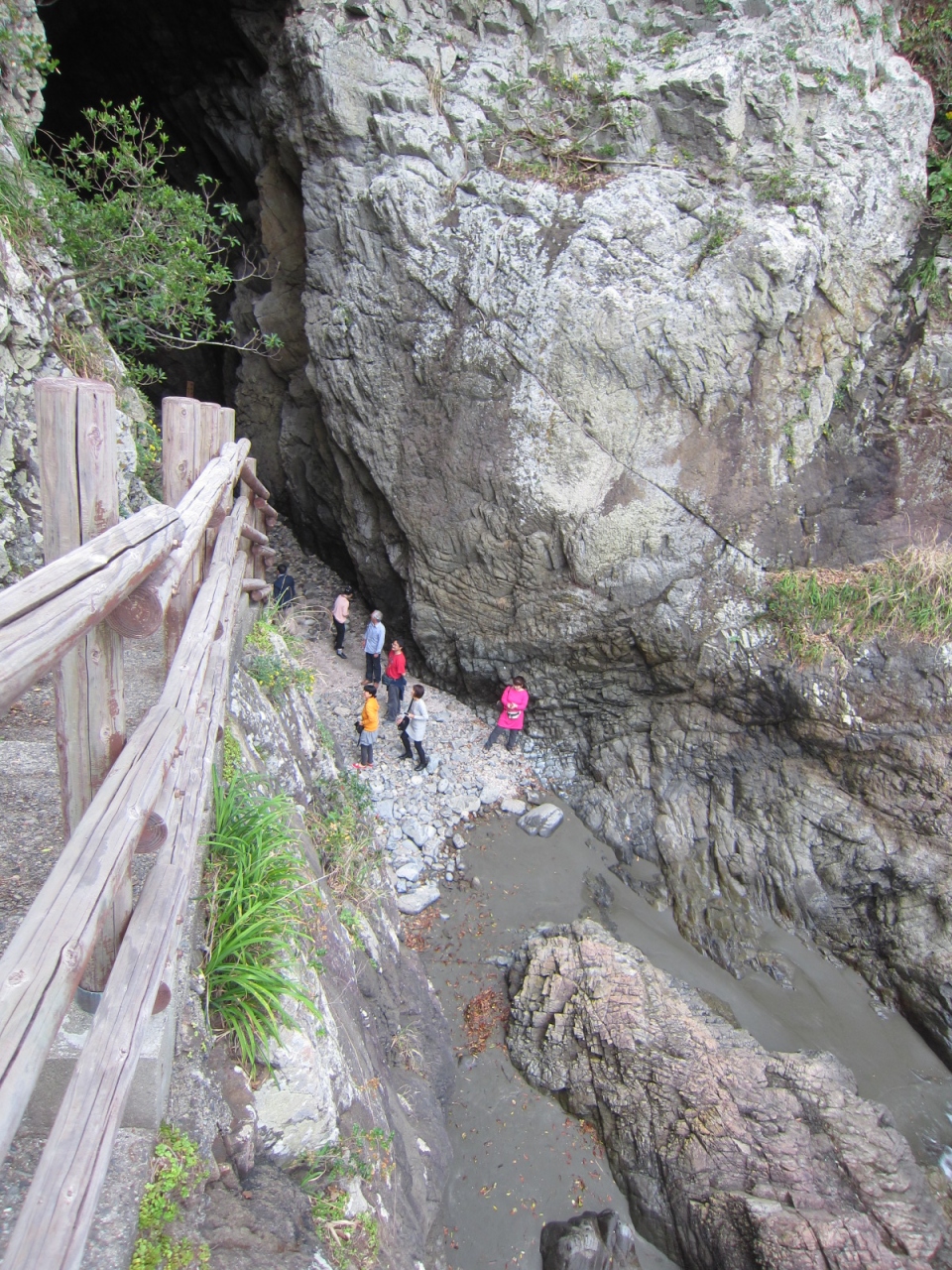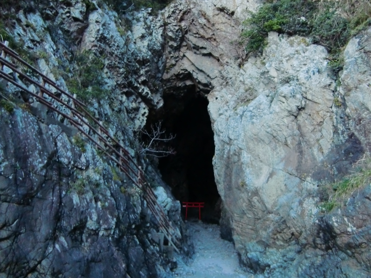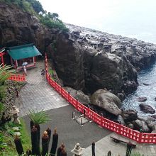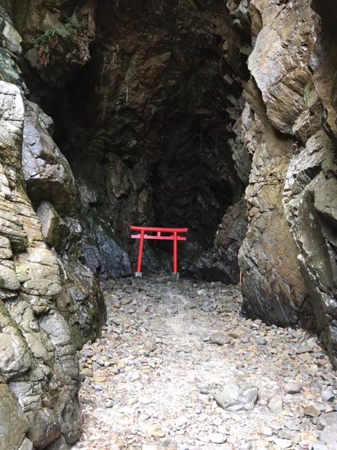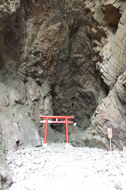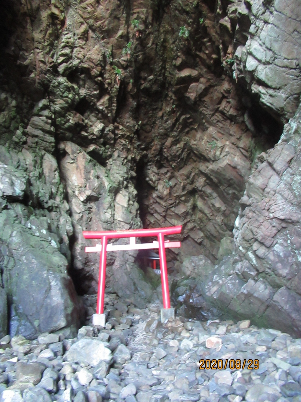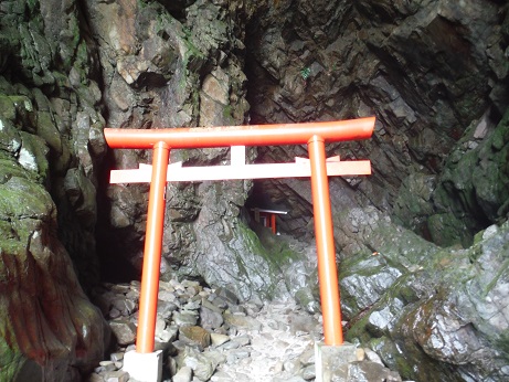 洞窟の中にお社がある点では日南の鵜戸神宮と同じですが洞窟は幅が狭く高さがものすごく高いです。