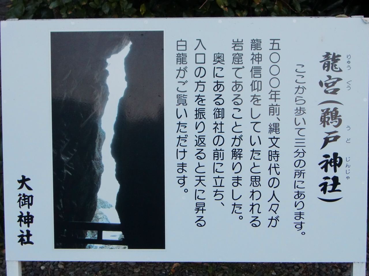 鵜戸神社はその祭神としてアマテラスの孫のニニギを祭ってはいますが、それは後付けの神で、縄文時代からこの地にいたのは龍神。
