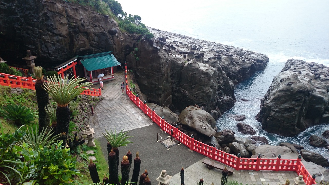 どちらも海蝕洞窟の神社... 続きを読むですが、鵜戸神宮は赤い欄干の階段が続く下り宮で有名な寺社でその場所は日南。