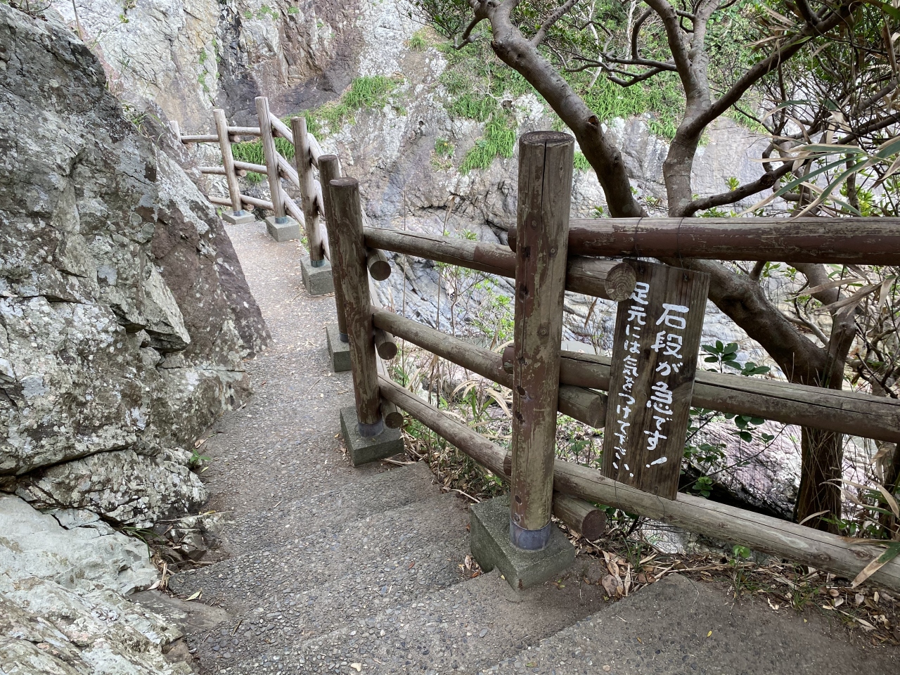 - 崖のようなところを階段でおりるので・・・。 by hannibalさん