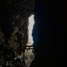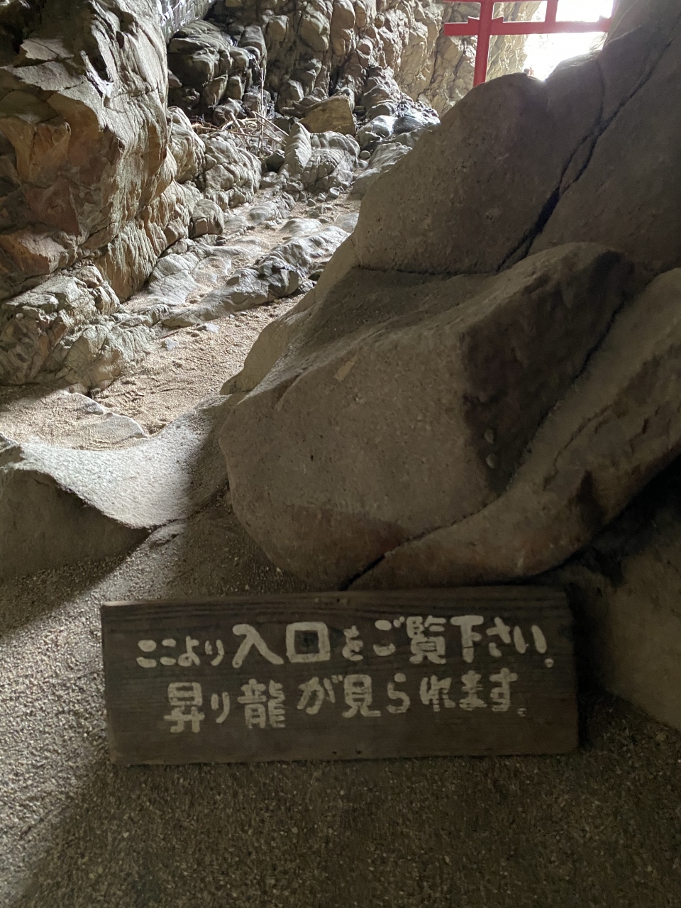 そのため、洞窟の奥のお社の前で後ろを振り返ると、外の明かりが昇っていく龍に見えるのです。