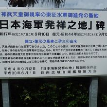 この碑を建立したのが当時の海軍大将であったということで、碑の名前も“日本海軍発祥の地の碑”なのでしょうが、普通に考えたら“日本水軍発祥の地の碑”が妥当でしょうね。