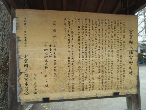 南砂へ車で行った時に寄りました。深川方面から葛西橋通りを進み、東砂7丁目から永代通りへ向かうバス通りを南下し、元八幡交番前... 続きを読むを右折したところに鳥居があります。駐車場がなかったので参拝者同様鳥居前の広い道路に車を止めました。参道の先に拝殿があり、お祓いを受けている人がいました。社殿の左側に神輿庫が並んでいて、富賀岡稲荷神社の神輿庫はガラス越しに神輿と獅子頭などを見ることができます。社殿の裏に砂町の富士塚があります。1789年に北にあった富士塚が水害で崩れたため現在地に移築されたと説明板に記されています。登り口が分かれていて多くの富士講碑が立っています。鳥居近くに砂村新左衛門顕彰碑があります。湿原や浮洲だった南砂全域と東砂8丁目を福井鯖江から来た砂村新左衛門たちが干拓と埋め立てたことと、砂村新田が1659年に完成したと記されています。南砂の歴史を知ることができる石碑です。見どころの多い富賀岡稲荷神社です。 閉じる